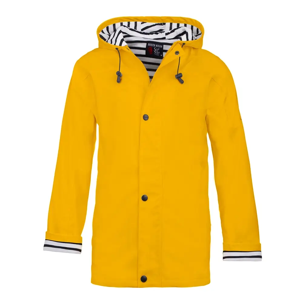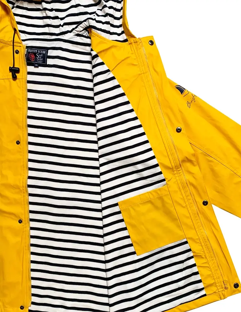 Une fermeture éclair, des boutons-pressions et des cordons réglables au niveau de la capuche équipent ce ciré breton. Ces éléments vous offrent une protection renforcée contre la pluie tout en vous permettant d’ajuster la veste à vos besoins. Les coutures sont renforcées avec des surpiqûres doubles pour garantir une grande durabilité et solidité.