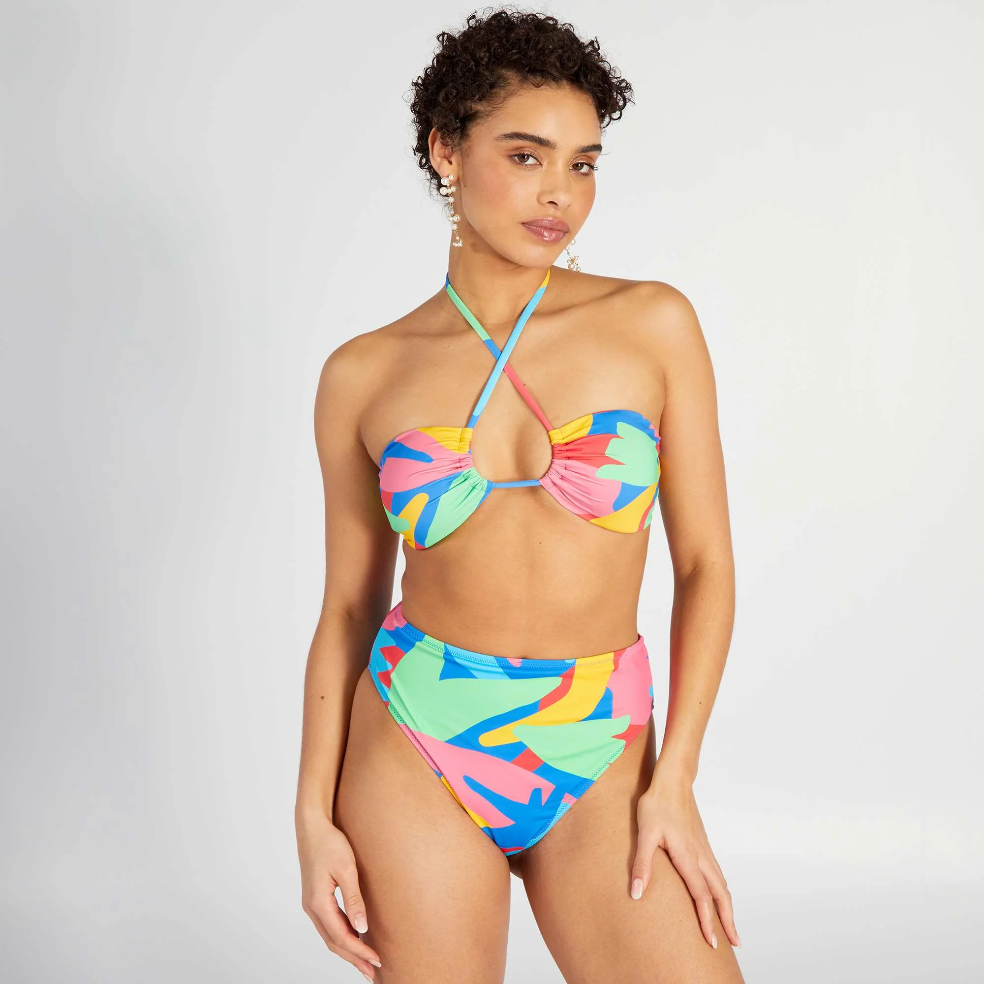 Bas de maillot de bain tanga colorblock Multicolore