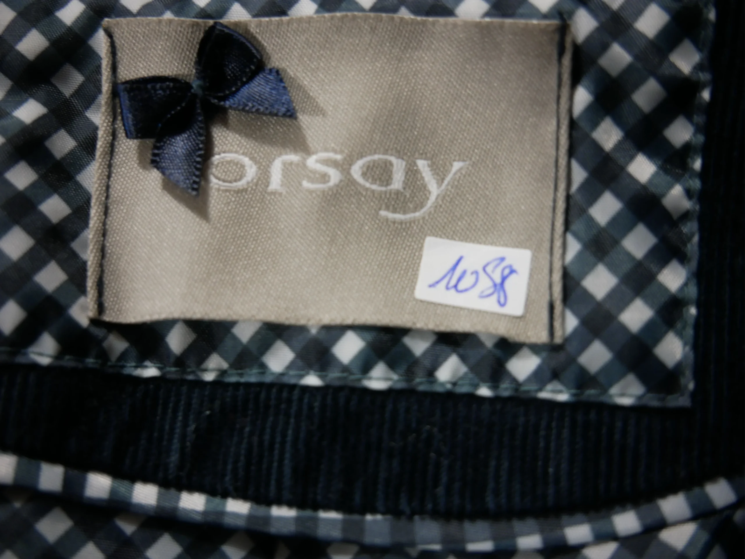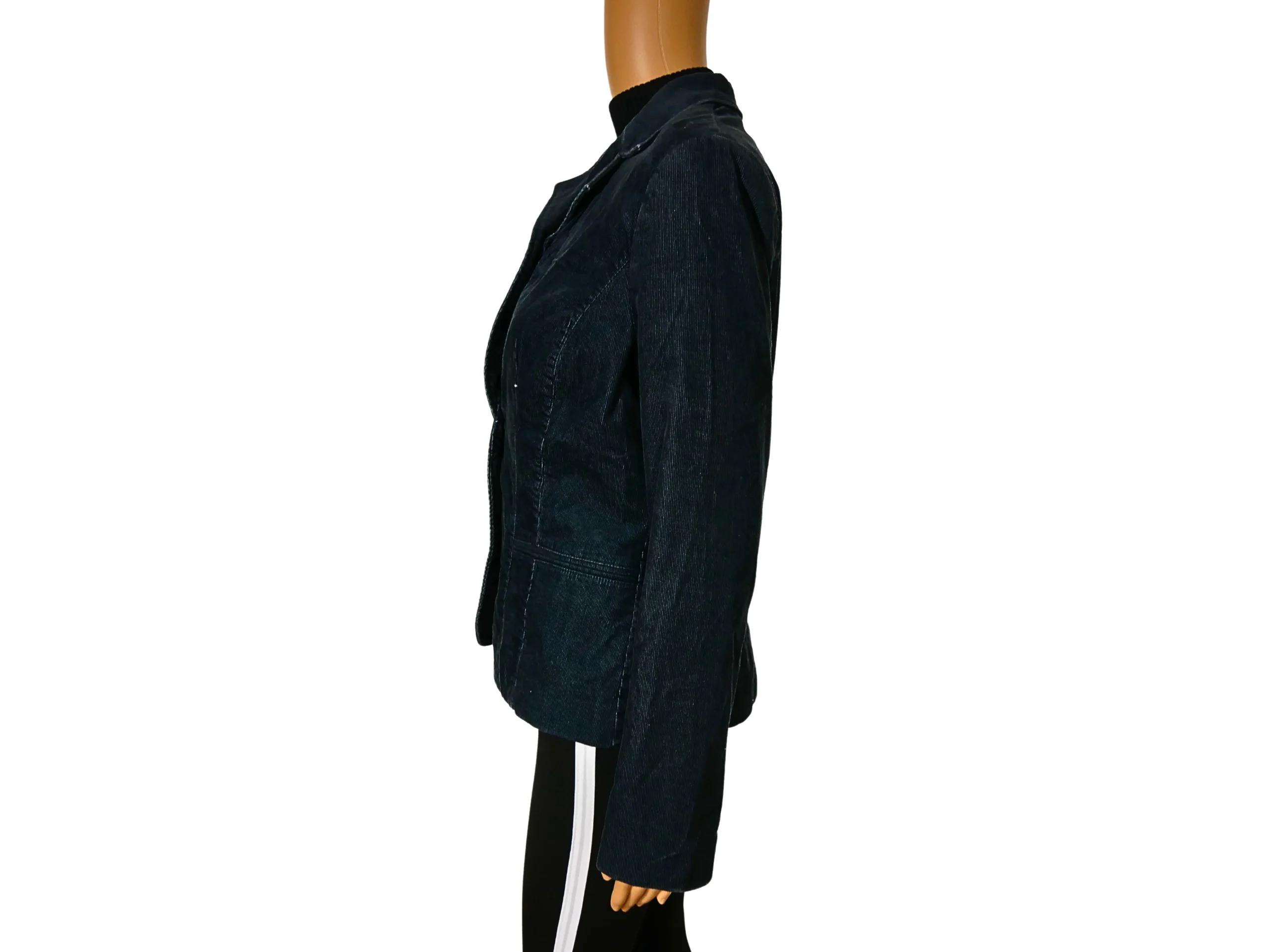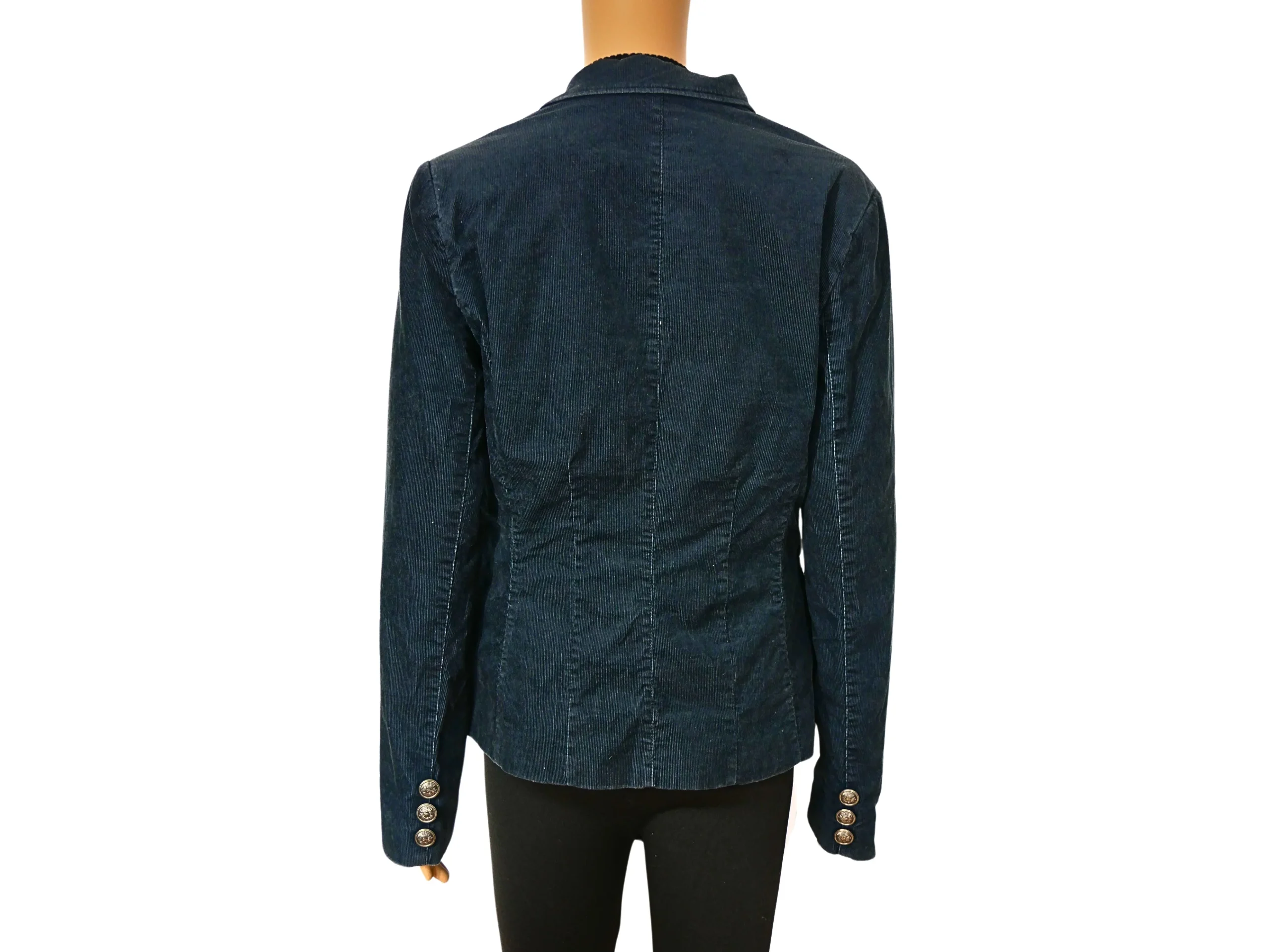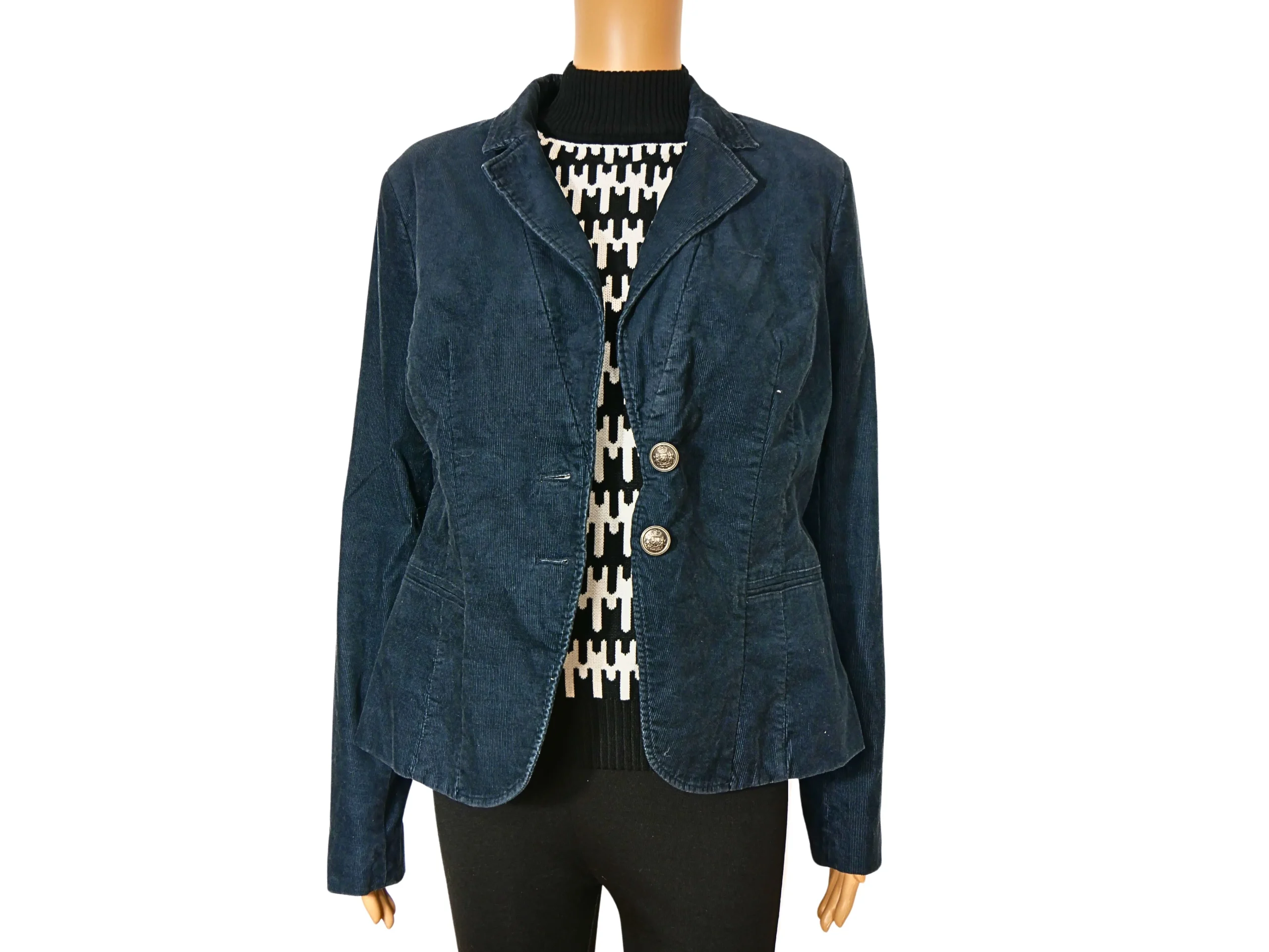 Blazer cintré bleu marine pour femme, marque Orsay. Cet veste de seconde main est en taille L, mais peut également convenir à une taille M. Les dimensions de la veste sont de 60 cm de longueur et 40 cm de largeur. Elle est en très bon état.
