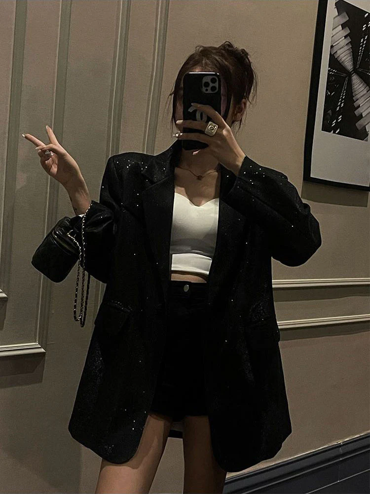 Blazer Pailleté Oversize Femme – Chic Élégant & Brillant