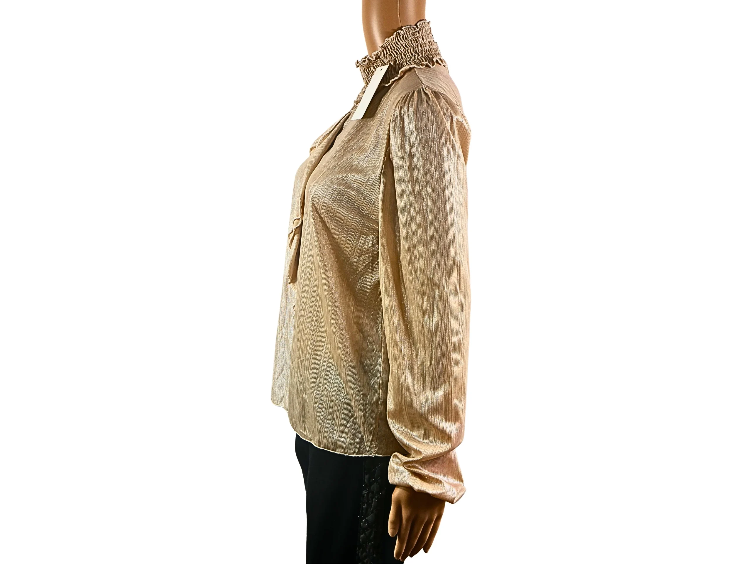 Découvrez la blouse beige col haut, l’élément incontournable pour une garde-robe tendance ! Parfaite pour toutes les occasions, cette blouse ajustée taille M de 68 cm de longueur et 35 cm de largeur vous offre élégance et confort en un seul vêtement. Rehaussez votre style avec cette pièce chic !