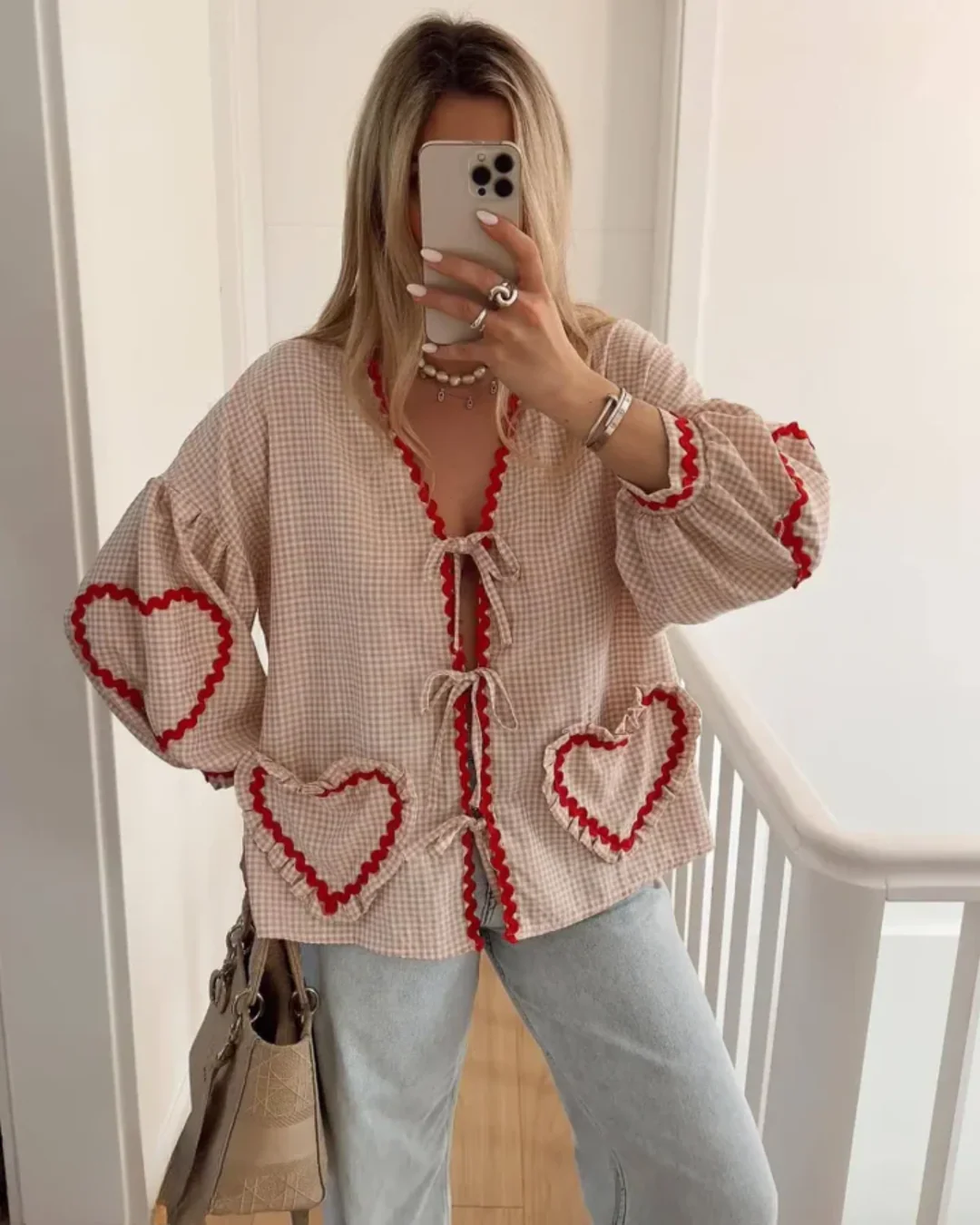 Soyez le premier à laisser votre avis sur “Blouse Bohème Beige Rouge Coton Broderie Cœur”