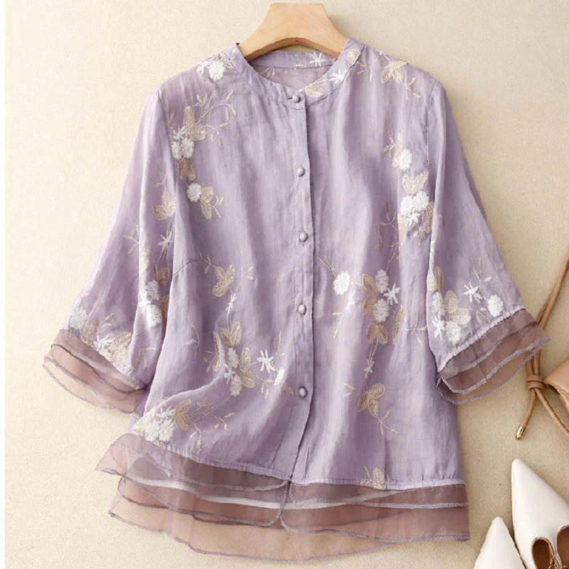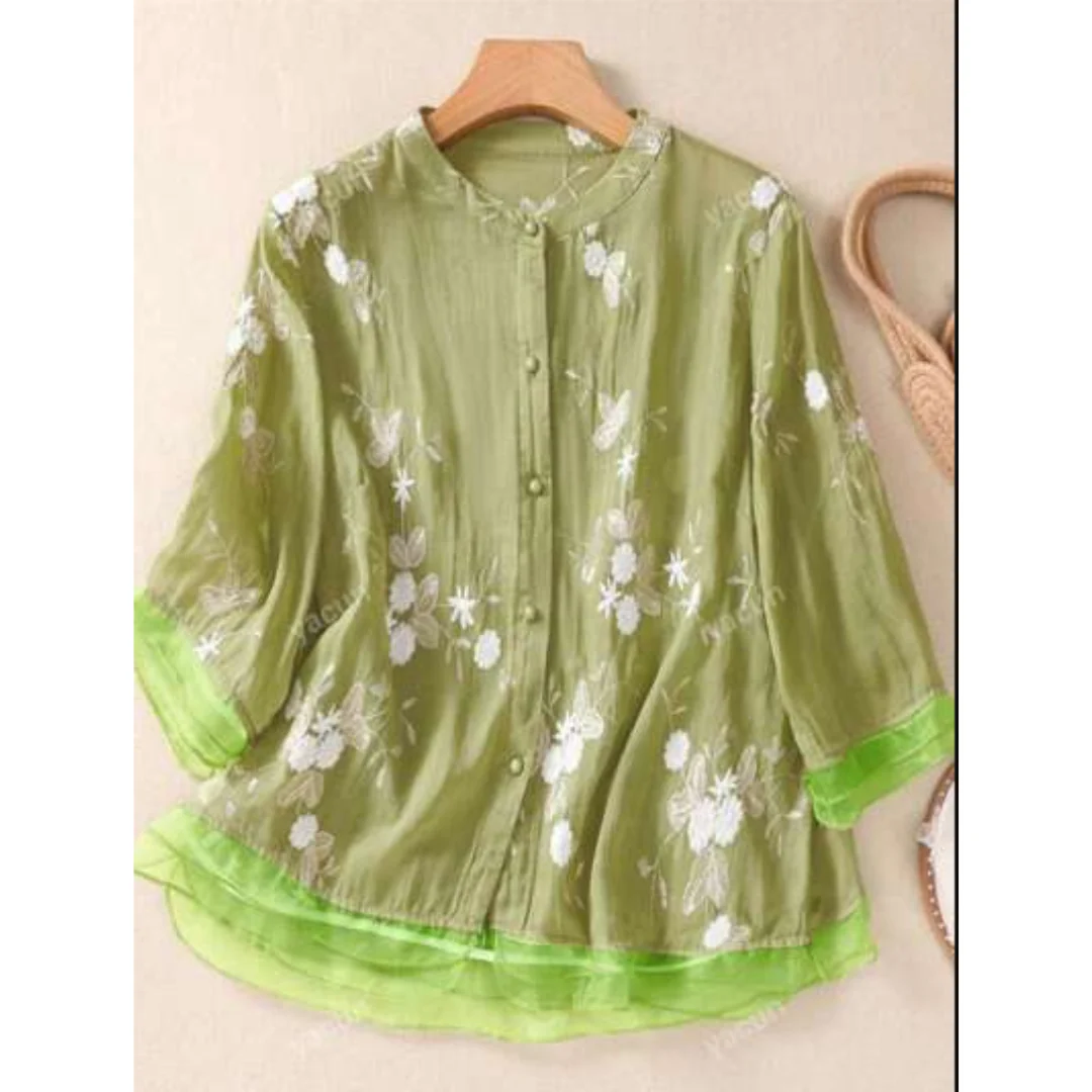 Blouse Femme Manches 3/4 Boutonnée | Coupe Décontractée, Style Romantique Chic