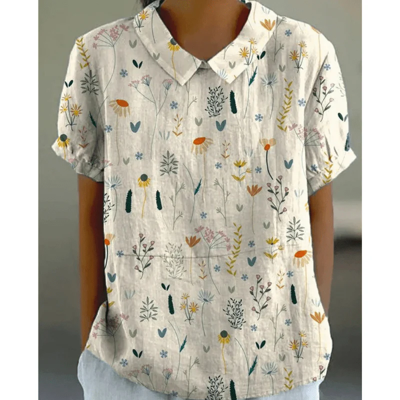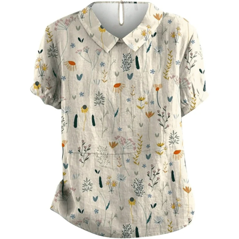 Blouse Fleurie Décontractée – Col Claudine & Confort Été