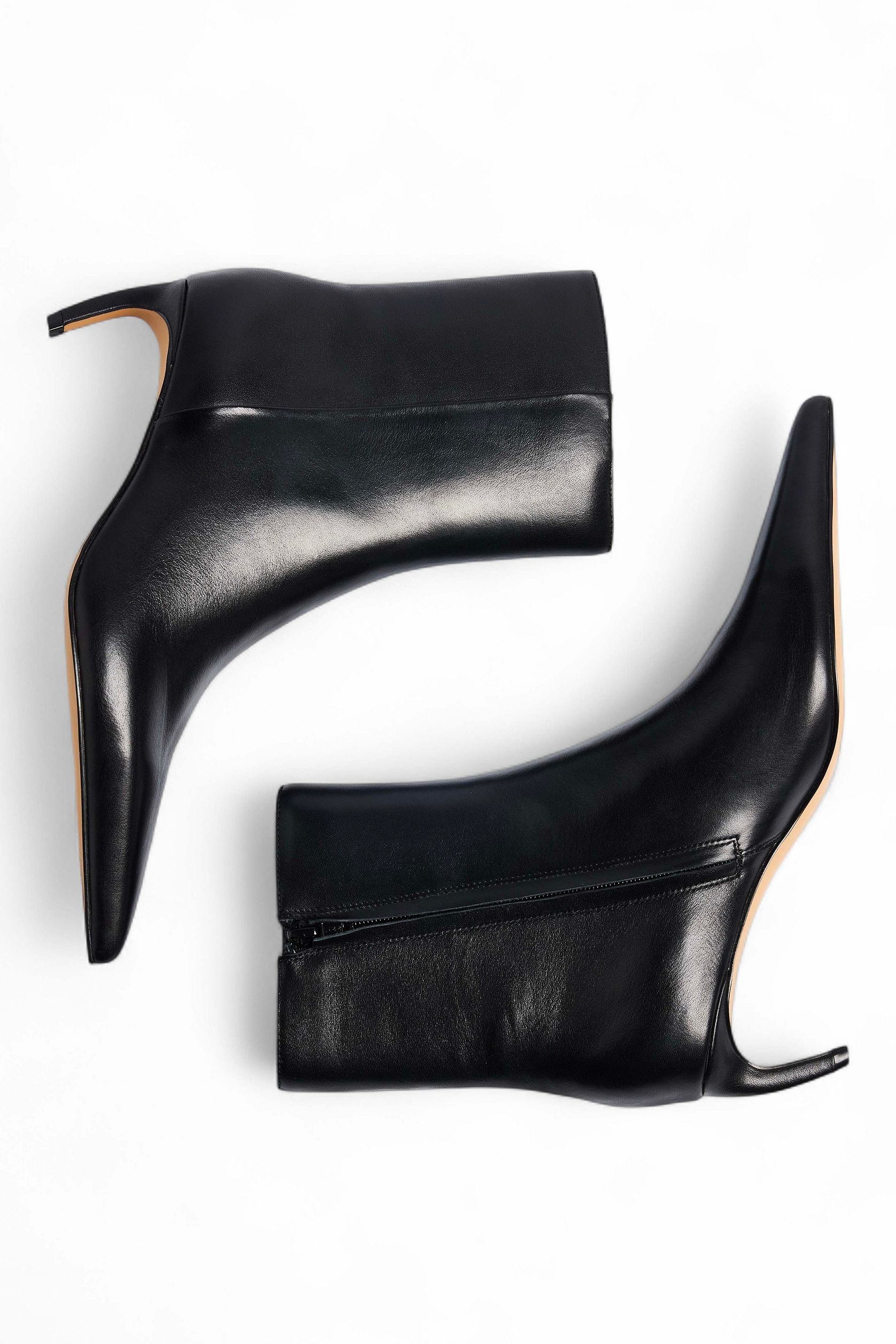 Ce modèle chic et épuré se distingue par sa tige en cuir de vachette de haute qualité et sa coupe ajustée à la cheville. Le bout très pointu allonge la jambe tandis que le talon sculpté, fin et incurvé (type kitten heel revisité) apporte une touche architecturale et minimaliste très tendance, parfait pour rehausser une tenue simple avec élégance.