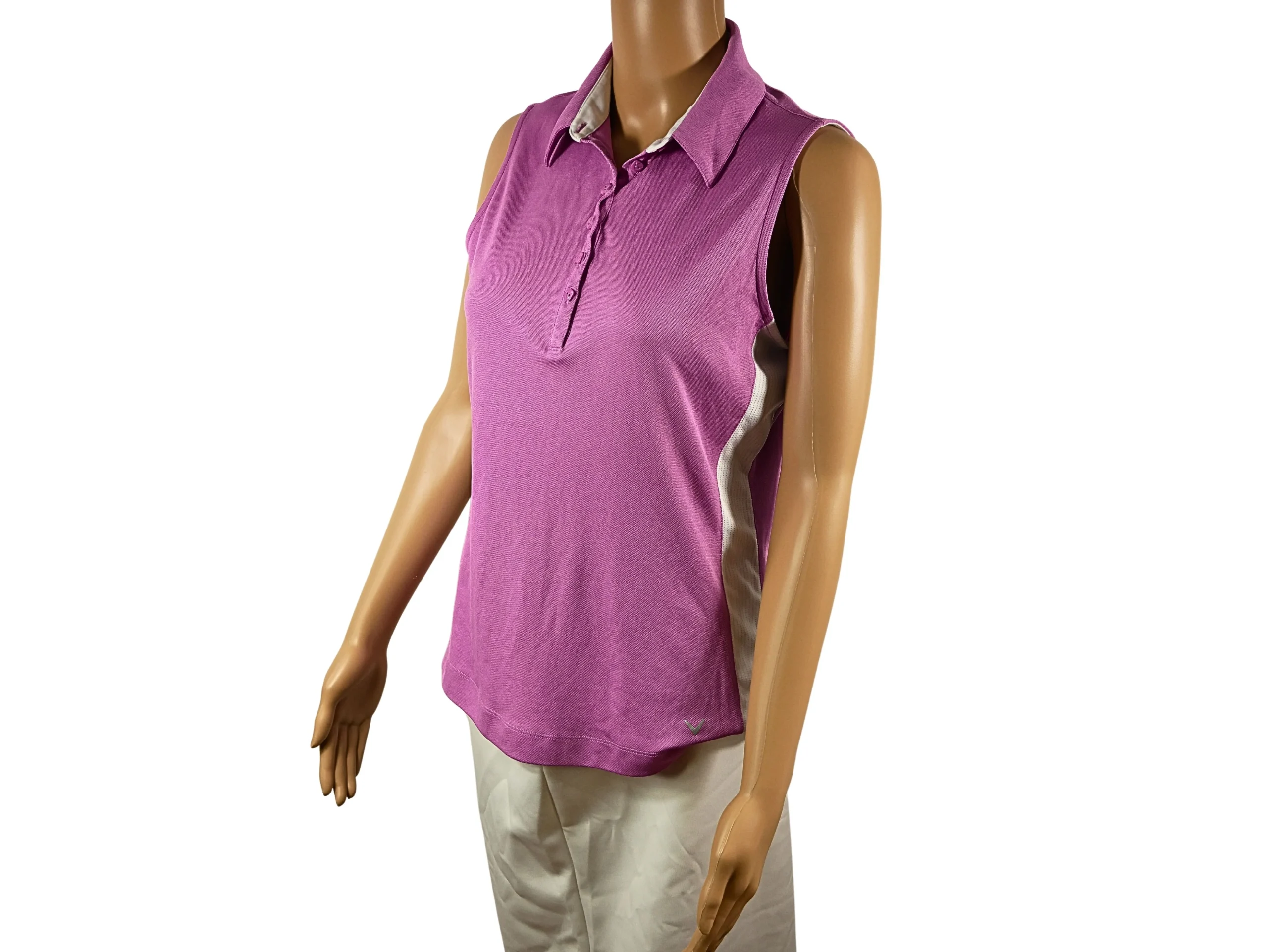 Découvrez le T-shirt sans manches bicolore de Callaway, une pièce incontournable pour votre garde-robe estivale. Ce superbe T-shirt rose de seconde main en taille M est en excellent état, ce qui en fait un choix à la fois écologique et stylé.