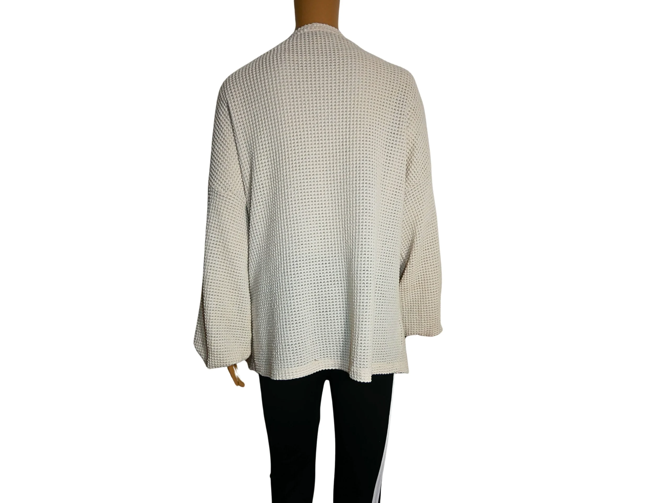 Découvrez notre cardigan blanc à manches longues décontracté pour femme, parfait pour ajouter une touche de style à votre garde-robe. Ce cardigan de seconde main, de taille S, allie confort et élégance, mesurant 68 cm de longueur et 46 cm de largeur.