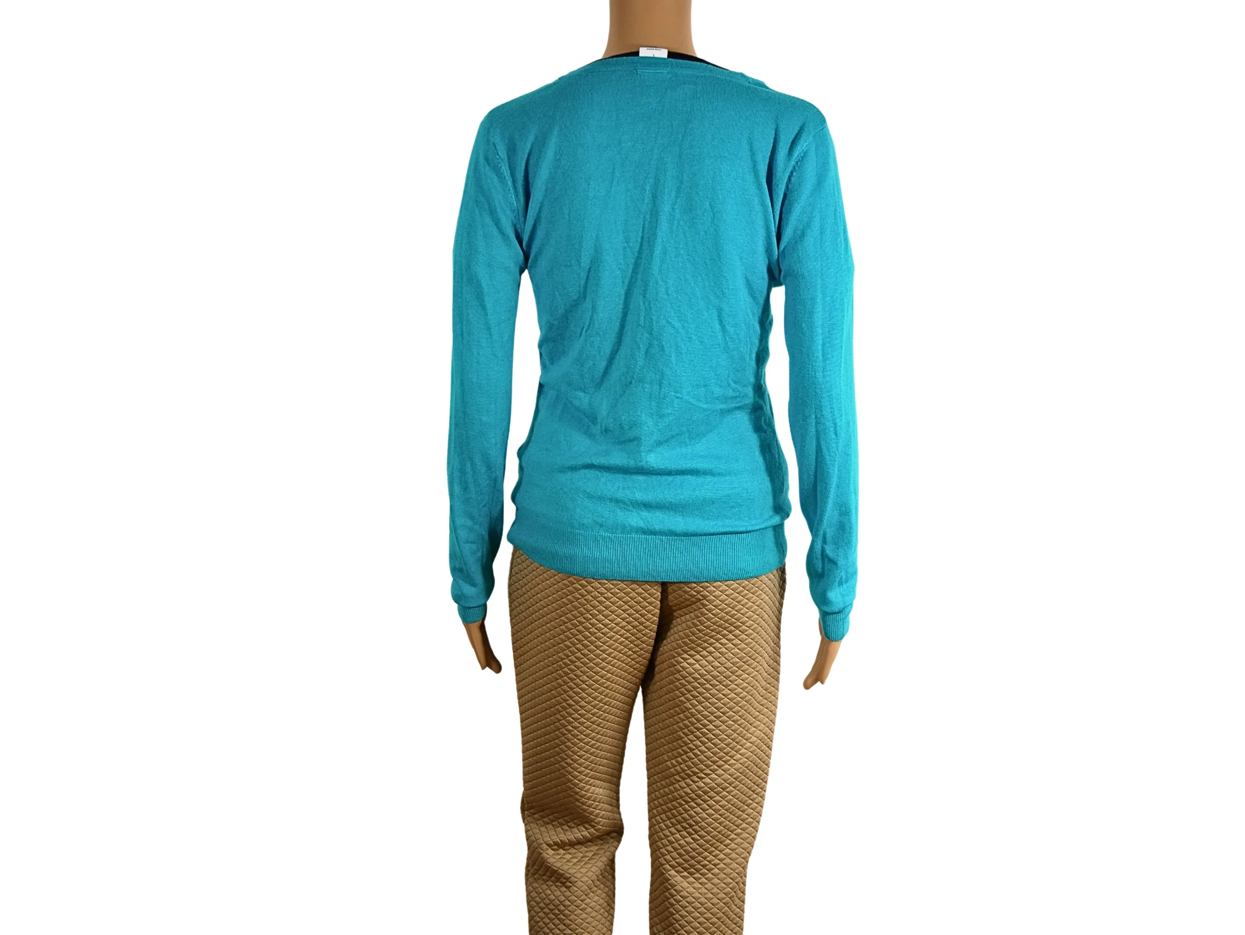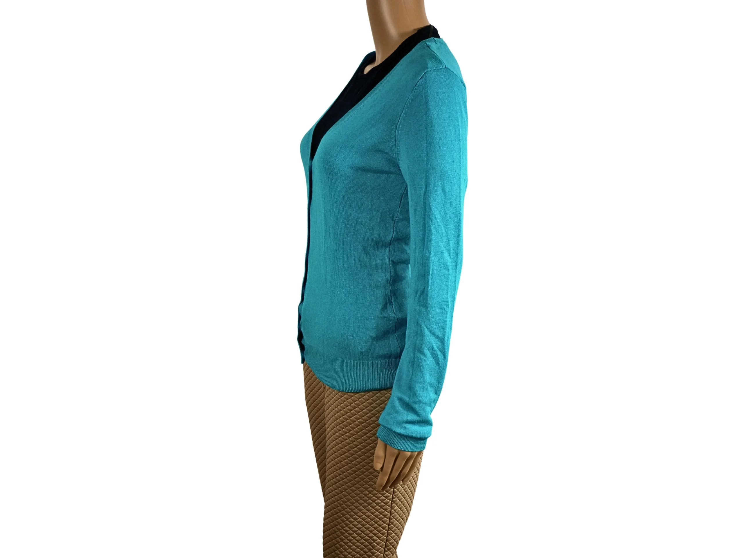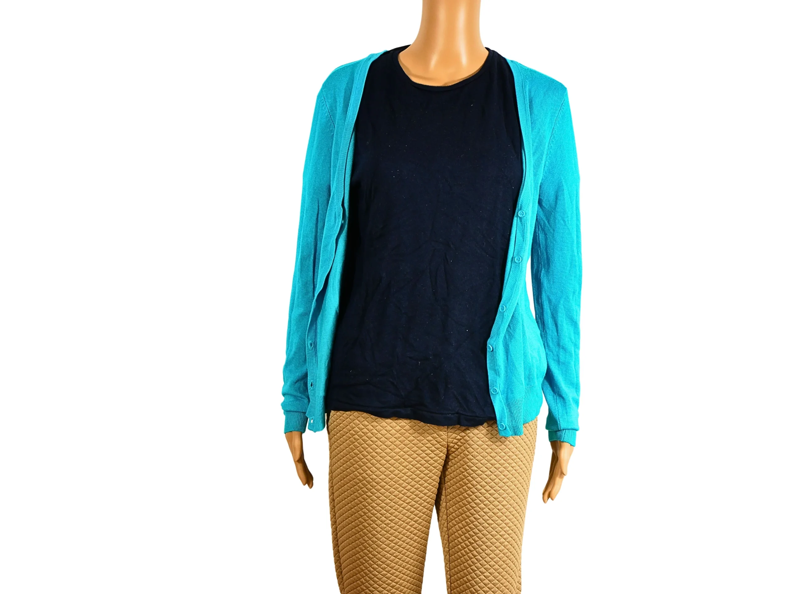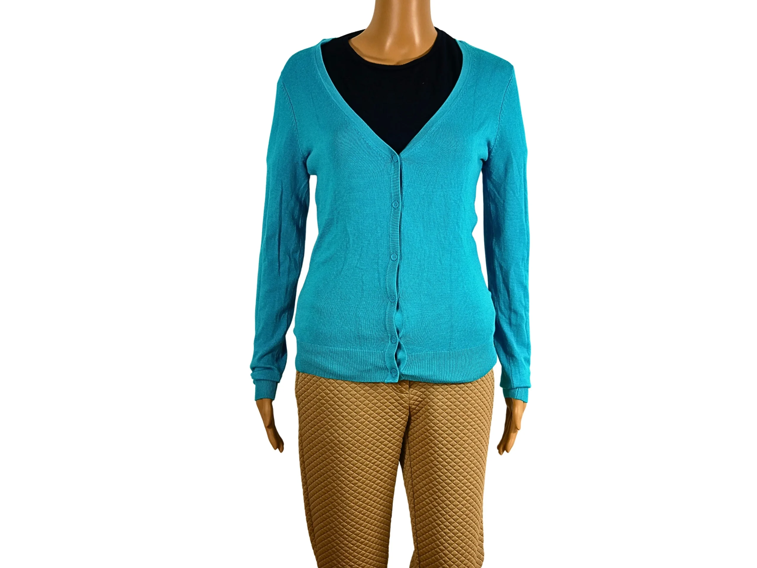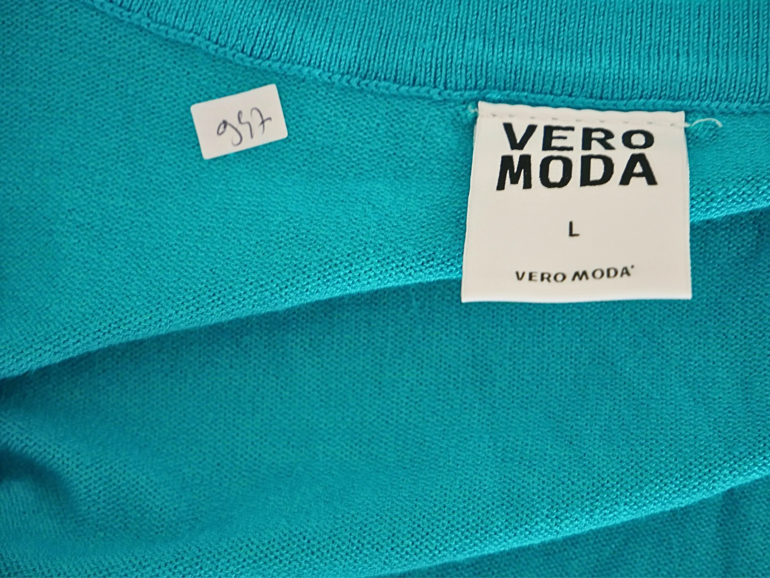 Ce magnifique cardigan bleu à longues manches de VERO MODA est parfait pour toute femme ! C’est un article de seconde main de taille L avec des mesures de 56 cm de longueur et 40 cm de largeur. En très bon état, ce cardigan est idéal pour la saison à venir.