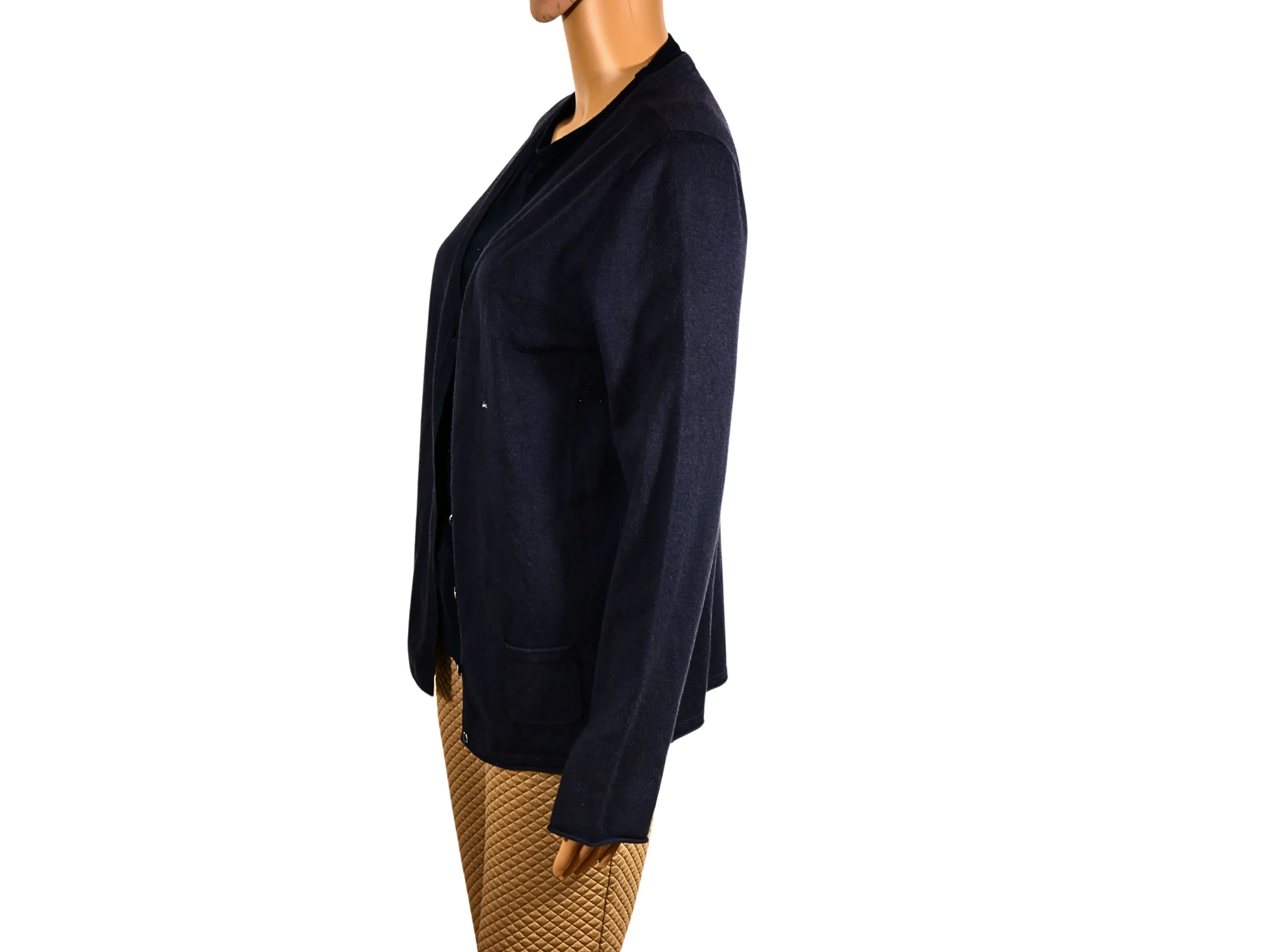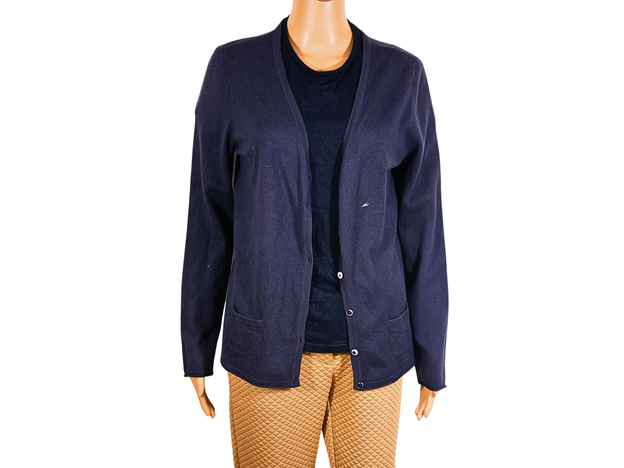 Ce superbe Cardigan boutonné col V Marine Street est en parfait état et fera un ajout élégant et tendance à votre garde-robe. En taille FR44, il mesure 63 cm de longueur et 44 cm de largeur pour un ajustement parfait. Ne manquez pas cette pièce de seconde main de qualité pour cette saison!