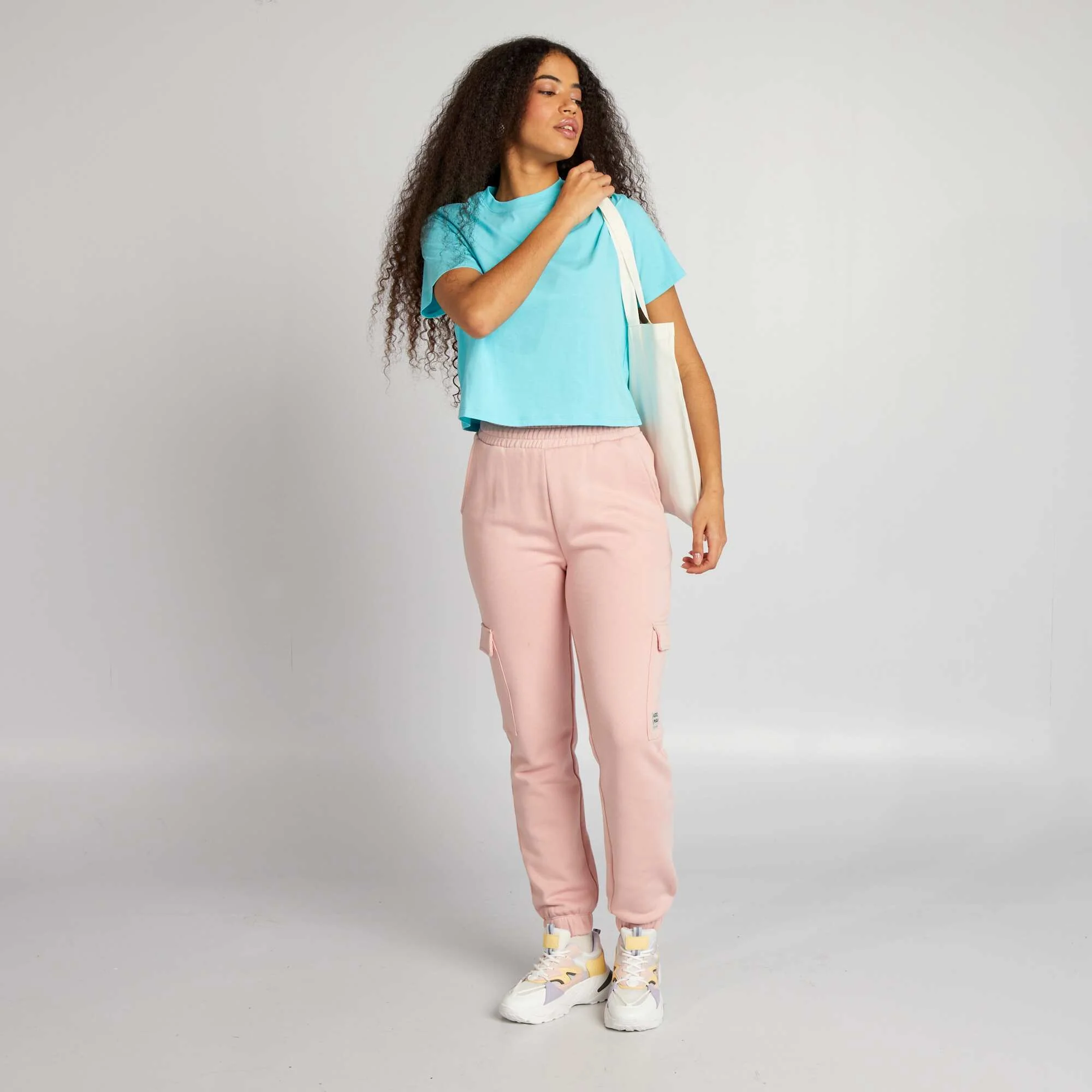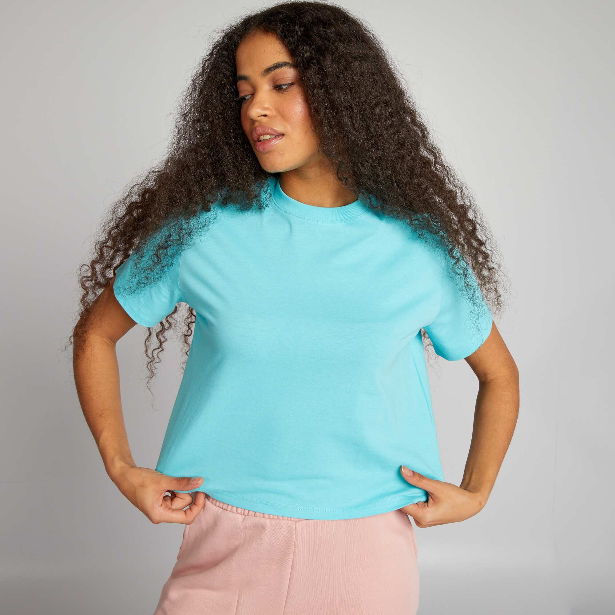 Crop-top en jersey uni Bleu