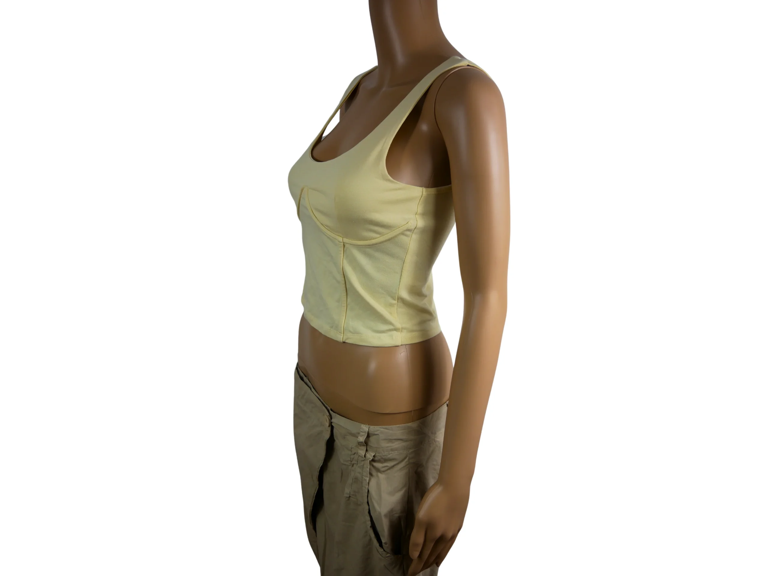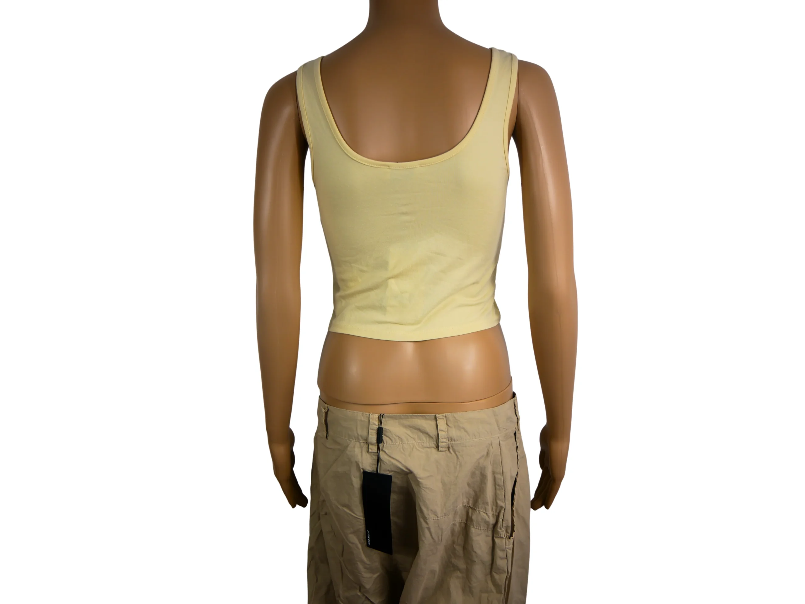 Découvrez le crop top NA-KD tendance pour femme, un indispensable pour un look irrésistible cet été! • Coupe moderne et courte pour mettre en valeur votre silhouette • Parfait pour les journées ensoleillées ou les soirées festives • Associez-le à une jupe taille haute ou un jean skinny pour un style ultra tendance. Ne manquez pas ce must-have de la saison. Le top est disponible en taille S, mesurant 41 cm de longueur et 31 cm de largeur.