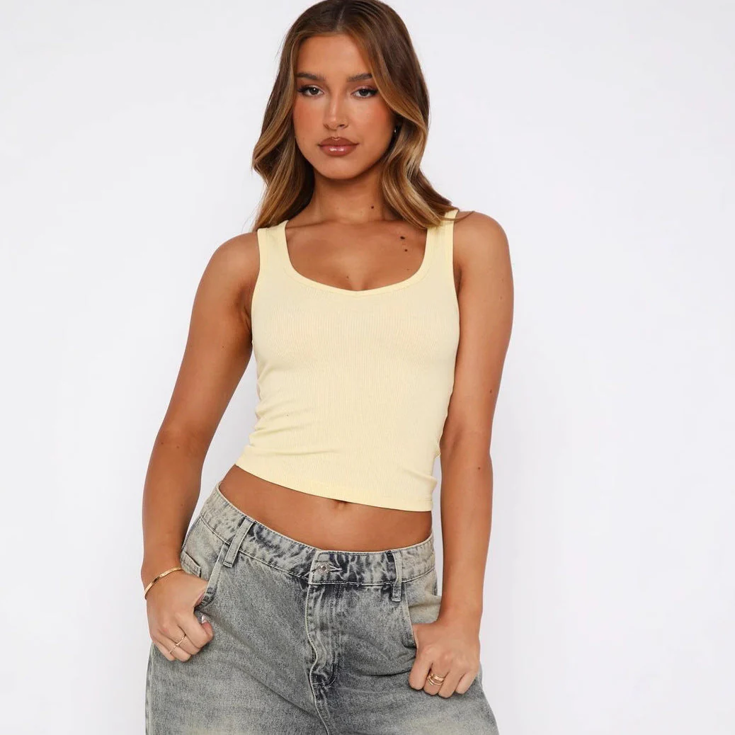 Ce débardeur côtelé à encolure carrée est un incontournable de la garde-robe moderne. Confortable et extensible, il épouse la silhouette sans comprimer, parfait à porter seul ou sous une chemise ouverte.