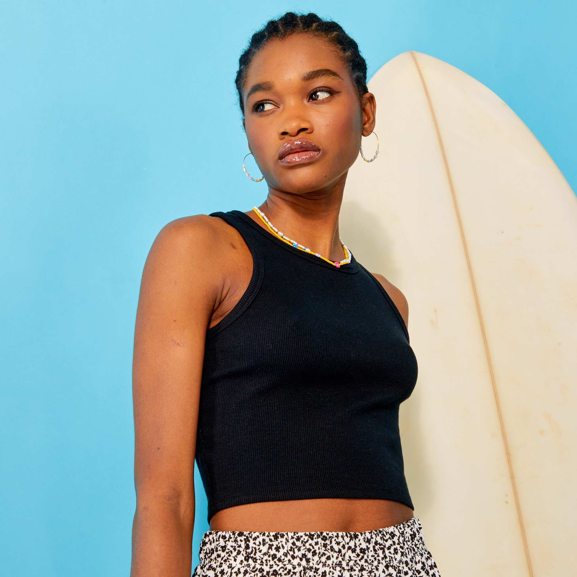 Soyez le premier à laisser votre avis sur “Débardeur uni côtelé noir”