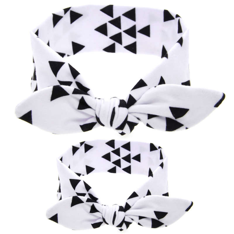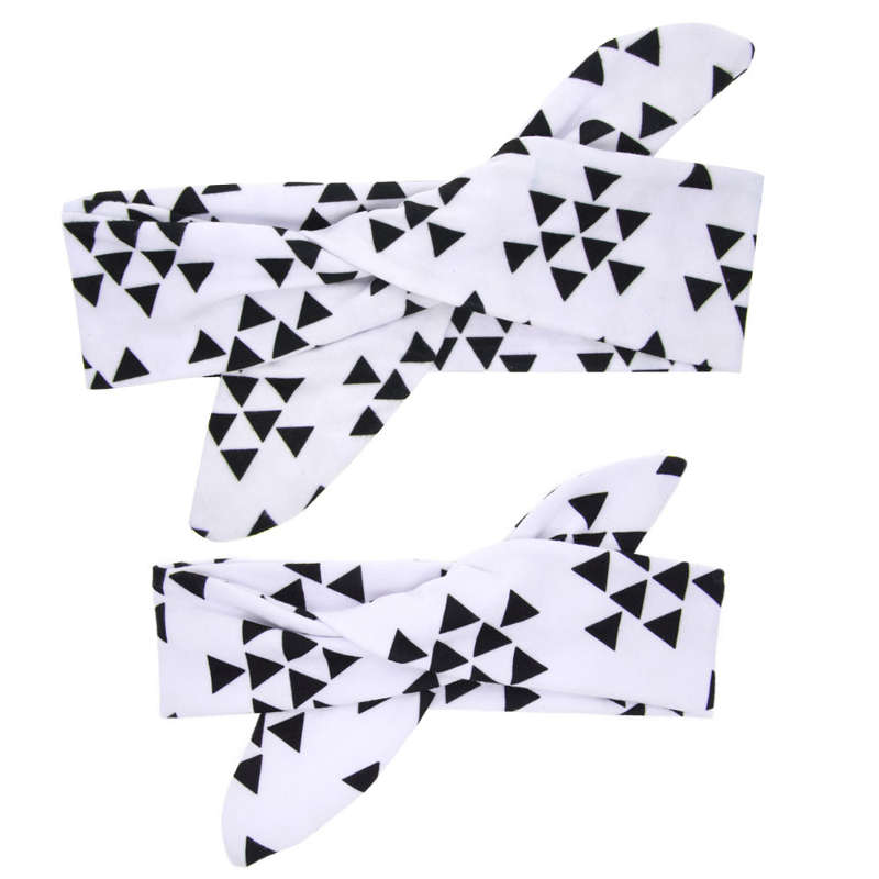 Bandeau en tissu blanc avec motifs triangles noirs.