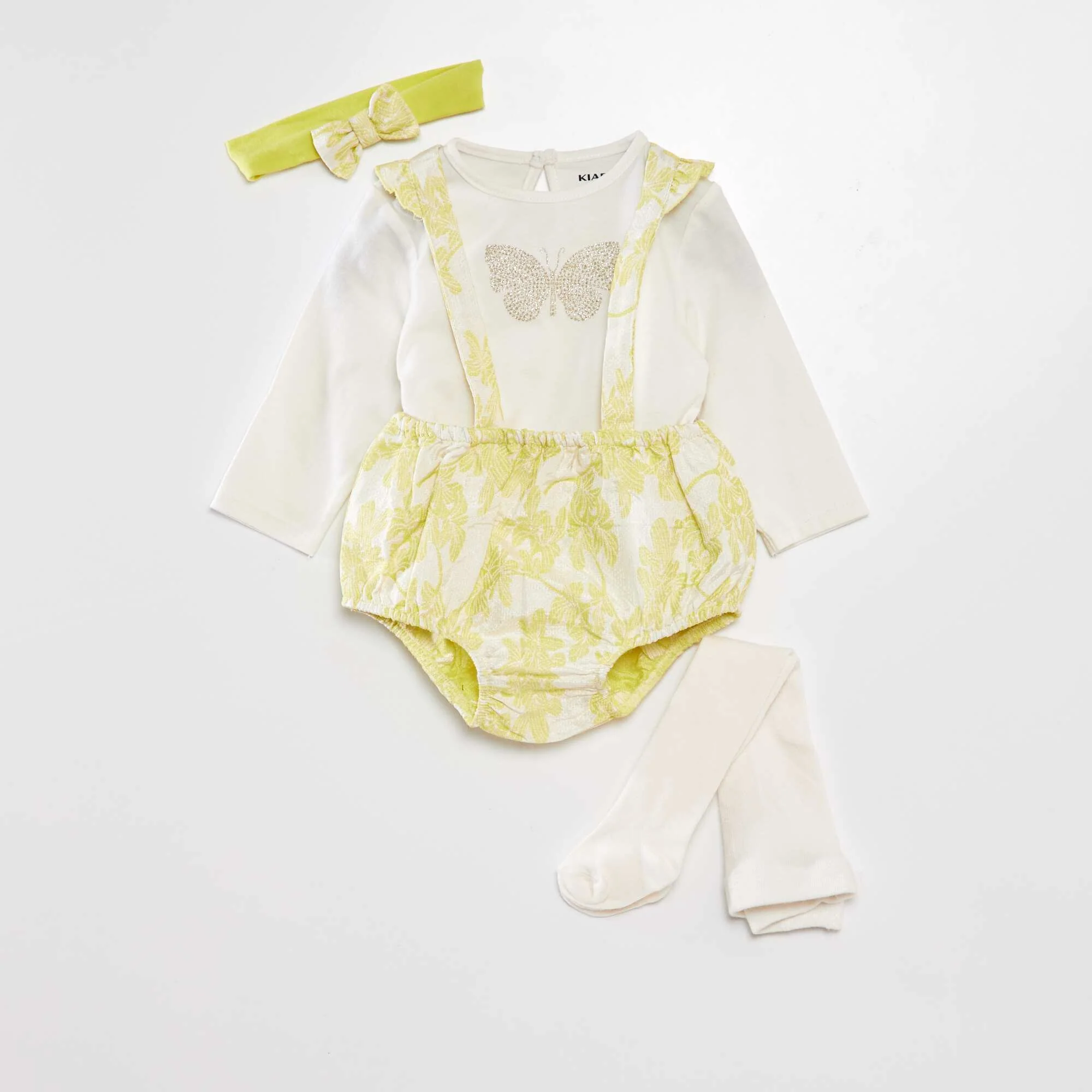 Ensemble 4 pièces – Tee-shirt + bloomer + collants + bandeau Beige/jaune
