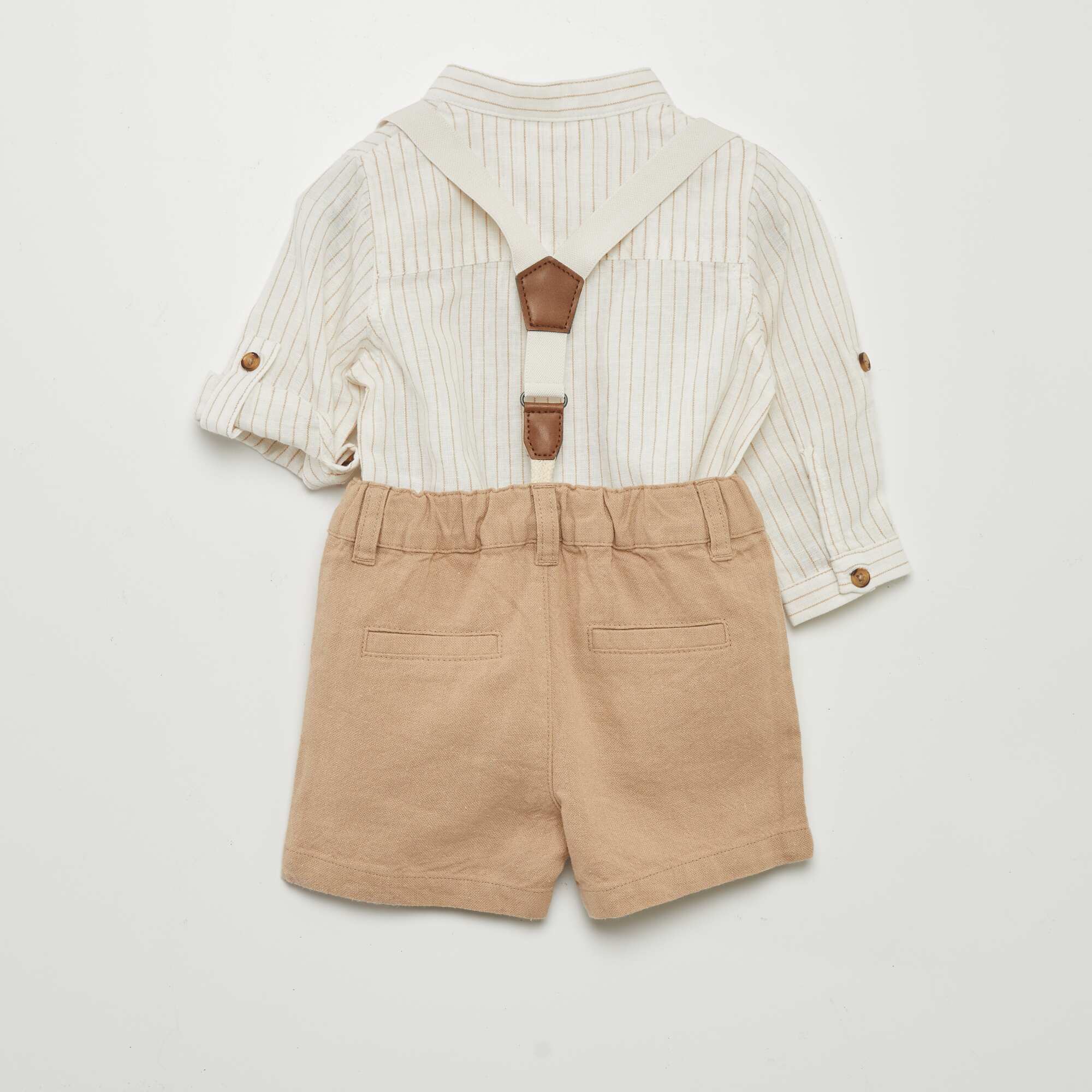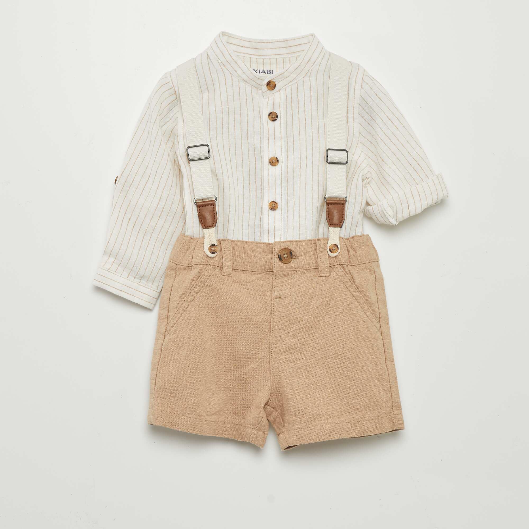 Ensemble chemise et pantalon à bretelles – 2 pièces Beige