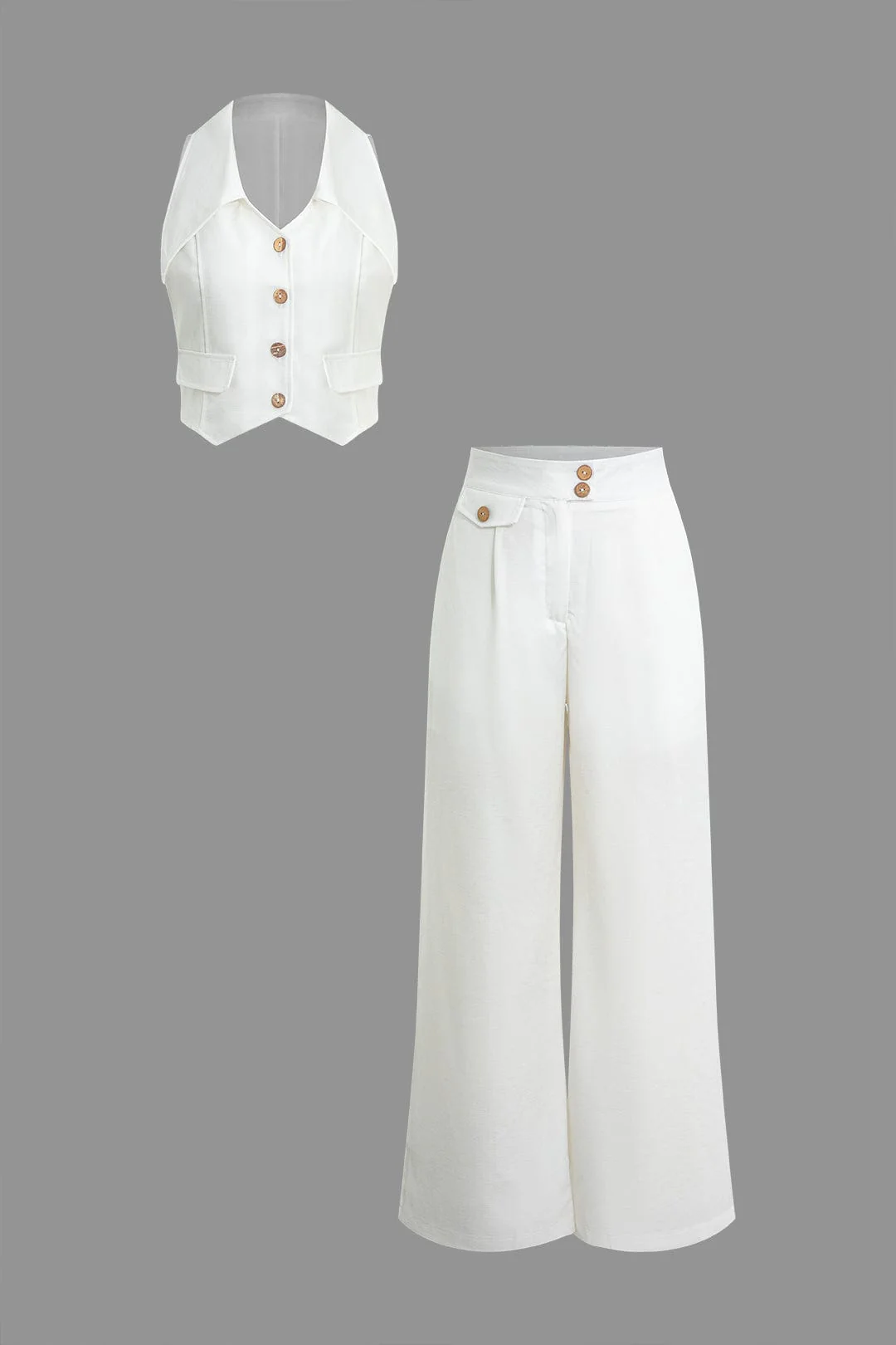 • Coupe: gilet court col V et pantalon taille haute, jambe large