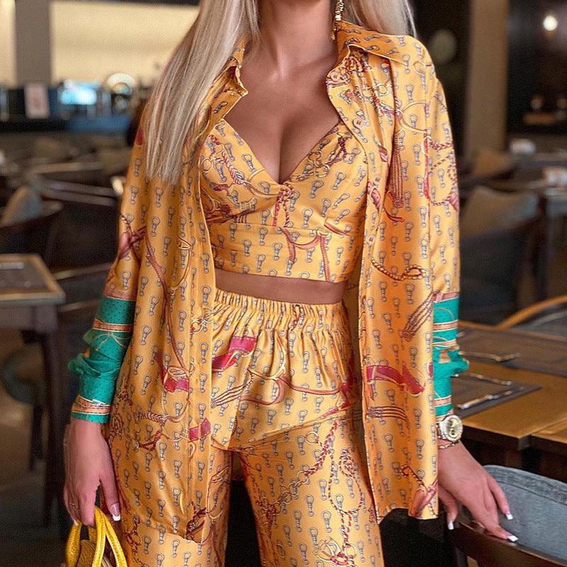 Ensemble Femme 3 Pièces | Imprimé Coloré & Élégant | Idéal pour Soirée ou Vacances
