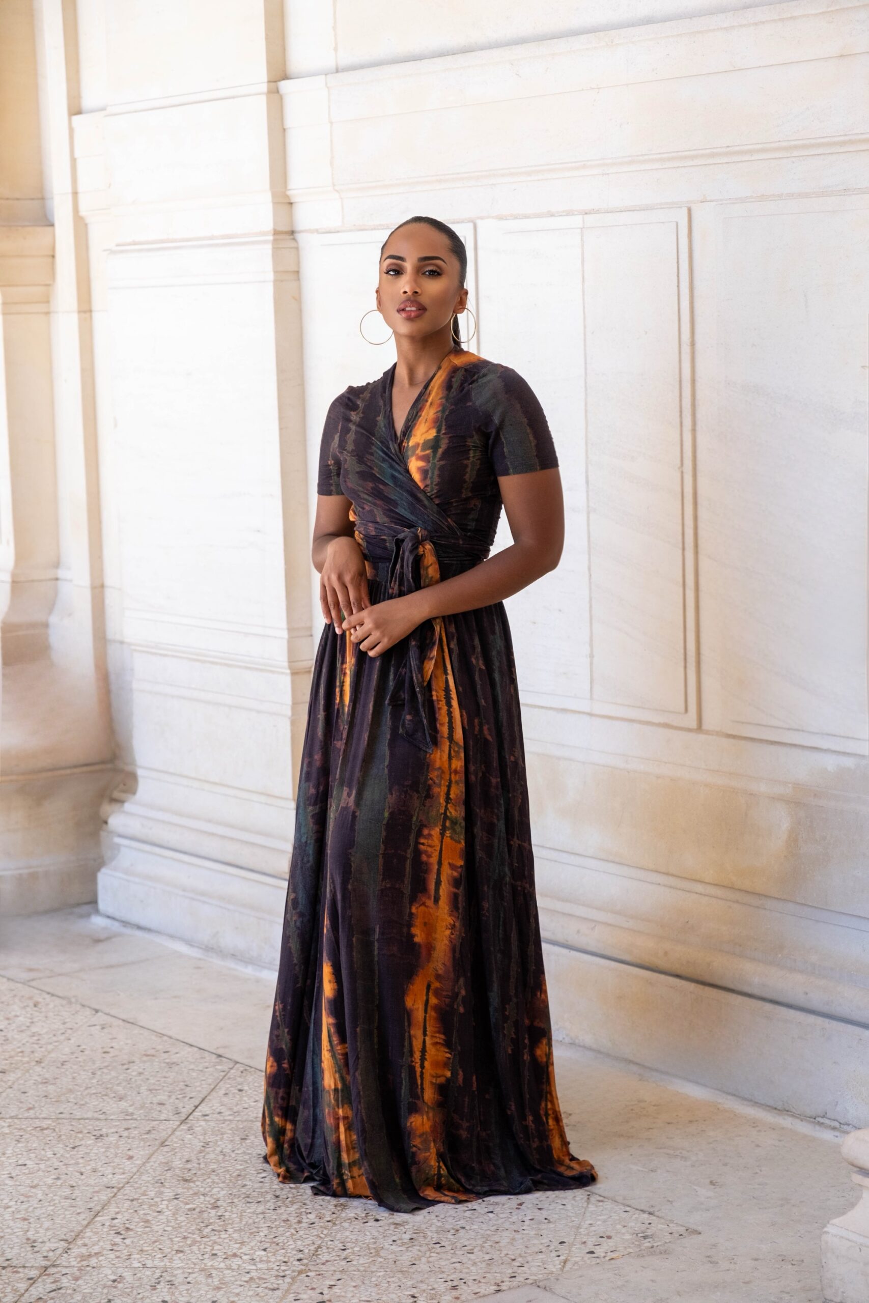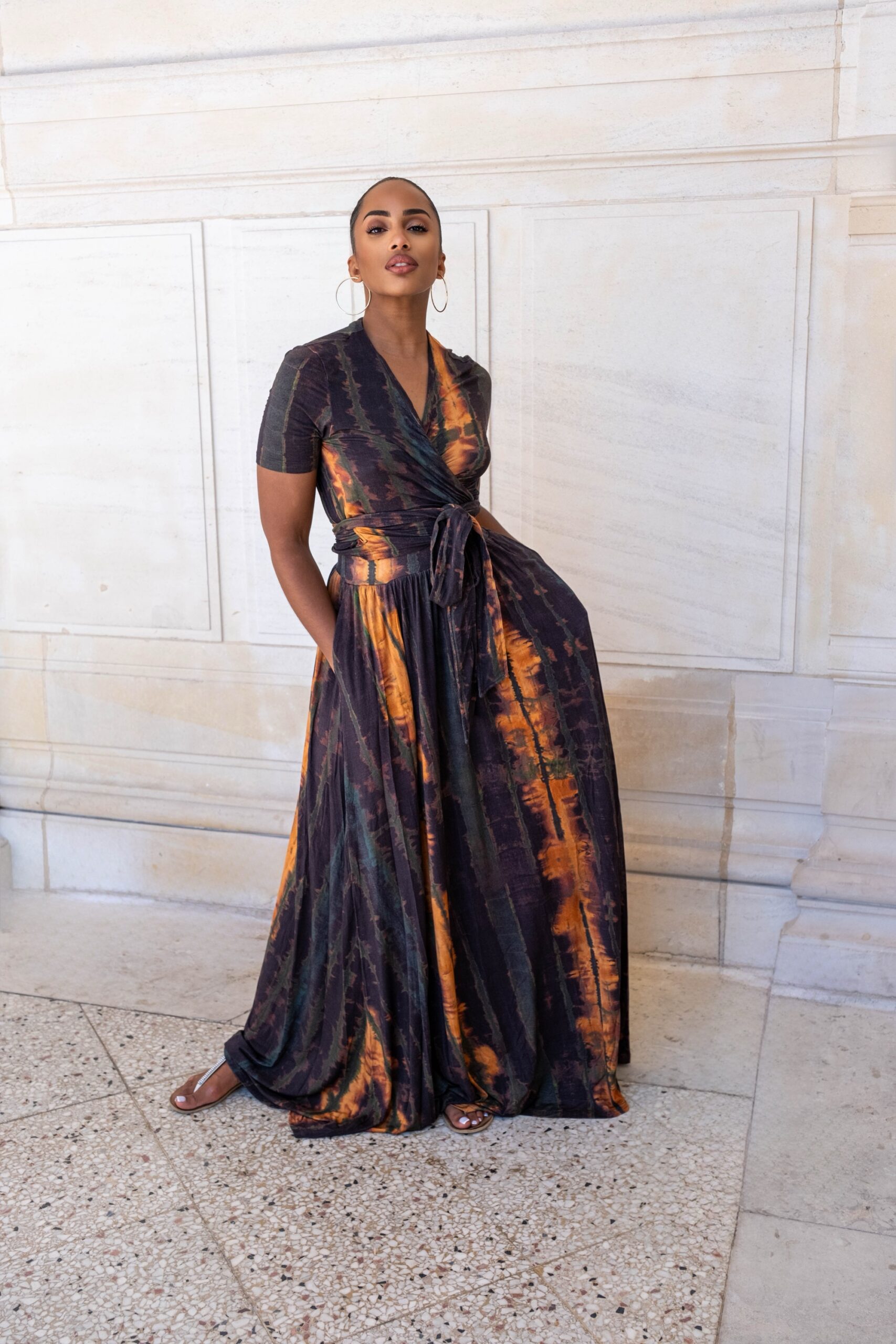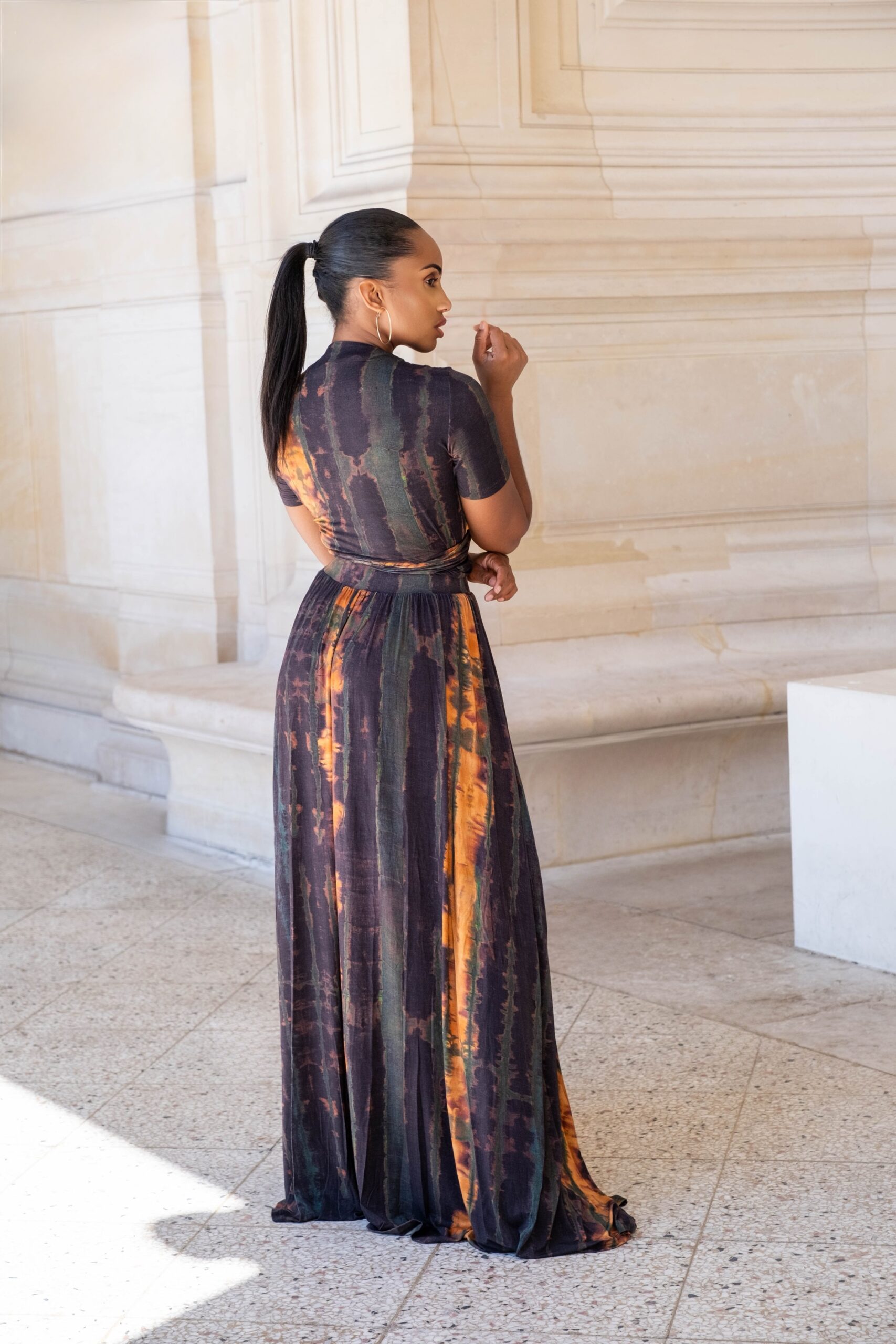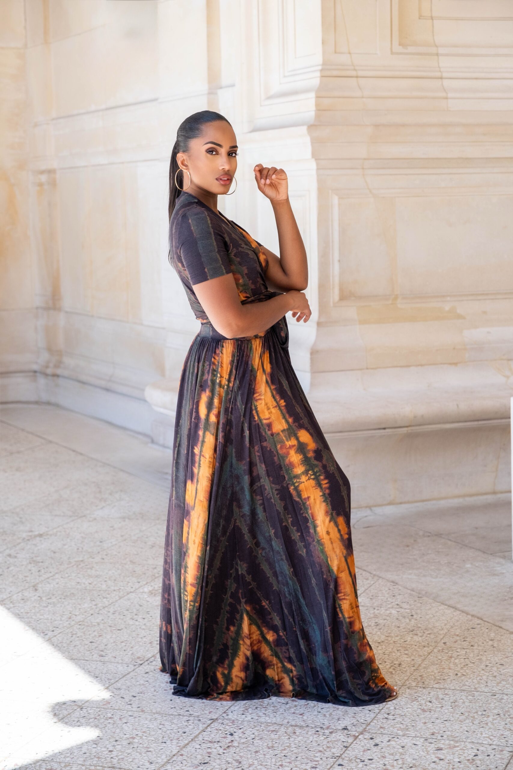 Vibrant et délicat, cet ensemble tie and dye aux nuances orange, vert et noir est une ode au mouvement et à l’élégance. Le haut cache-cœur, à la coupe flatteuse, sublime le décolleté avec justesse et s’ajuste selon l’envie. Il enlace la silhouette comme une caresse d’été.La jupe taille haute, fluide et légère, accompagne chacun de vos pas avec grâce. Son tissu élégant et agréable au toucher glisse sur la peau comme une seconde brise. L’imprimé tie and dye, savamment dosé, apporte une touche artistique et solaire, parfaite pour les femmes qui osent la couleur avec chic. Porté ensemble ou séparément,…