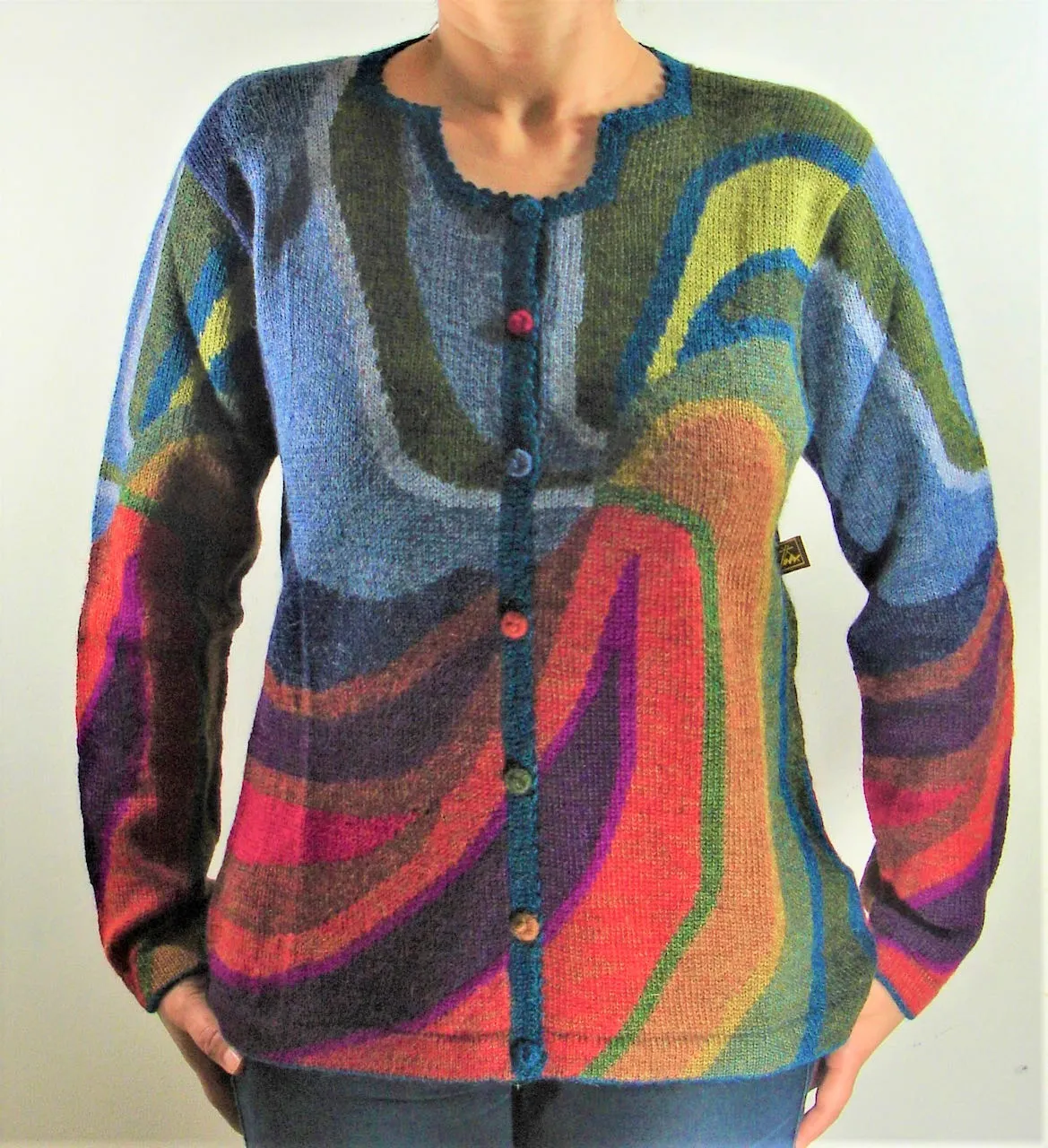 Confectionné en pur laine d’alpaga avec figure moulin à vent arc-en-ciel.