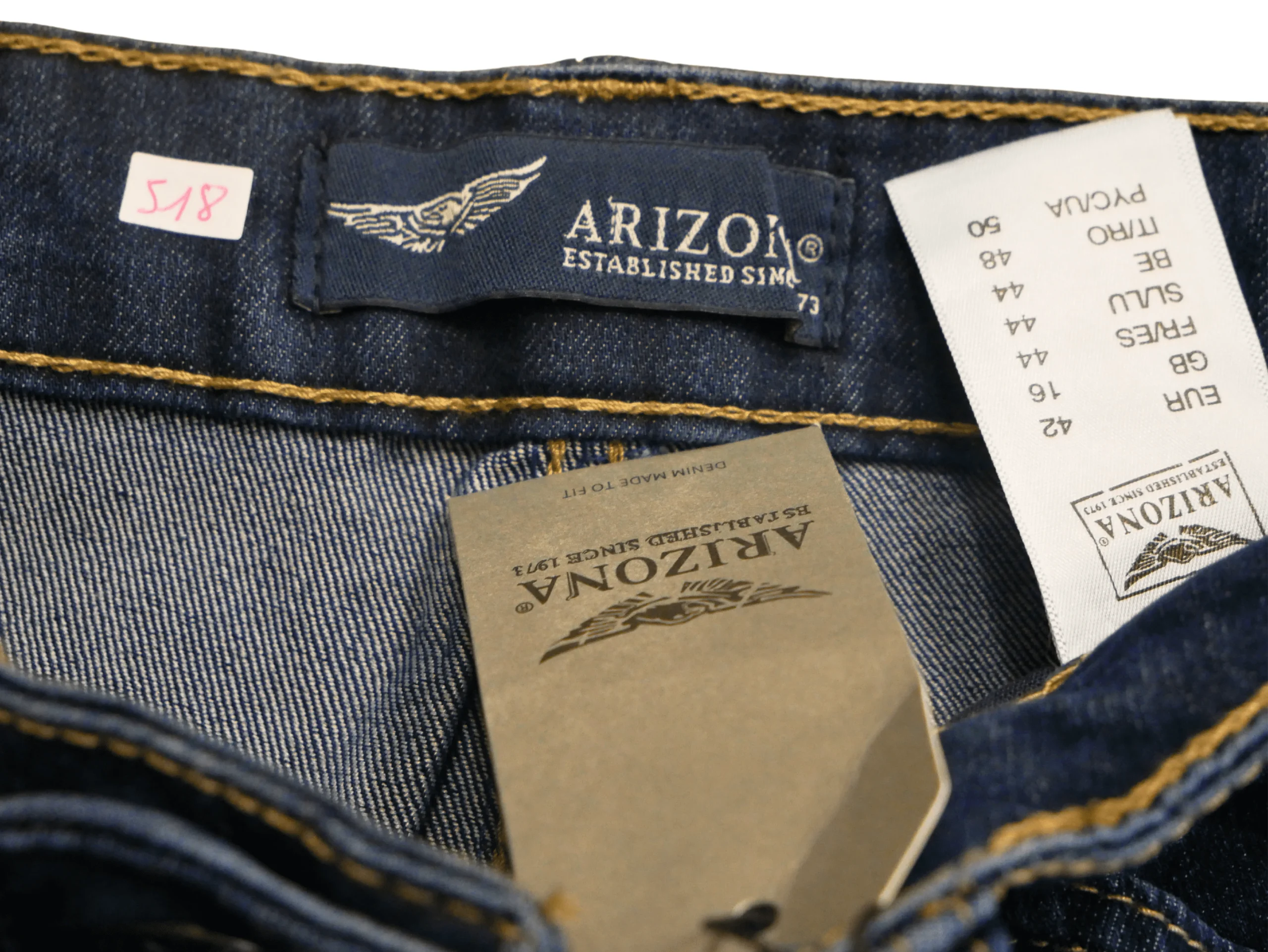 Explorez notre jean coupe droite ARIZONA en bleu délavé, le choix idéal pour un style décontracté et intemporel. Avec sa coupe classique et sa teinte tendance, ce jean est parfait pour ajouter une touche de style à votre garde-robe. Confortable et polyvalent, c’est un incontournable pour un look chic décontracté. Obtenez le jean parfait pour toutes vos occasions du quotidien avec ARIZONA. Taille FR44, mesurant 102 cm de longueur et 42 cm de largeur, pour une tenue parfaite en toutes circonstances.