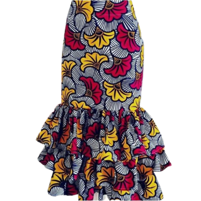 Notre jupe en pagne est un moyen idéal de défier les notions traditionnelles de ce qu’une femme devrait porter et d’être sexy avec une forme différente.
