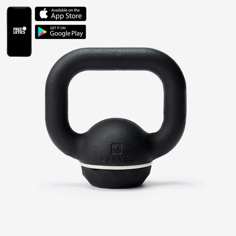 Grâce à sa polyvalence, il offre une large gamme d’exercices et de combinaisons, permettant de personnaliser l’entraînement en fonction des objectifs. Que vous souhaitiez renforcer vos muscles, perdre du poids, améliorer votre endurance ou booster vos performances athlétiques, le kettlebell s’adapte à tous les niveaux et à toutes les attentes. Pourquoi le kettlebell possède une base en caoutchouc ? Grâce à son revêtement en caoutchouc, ce kettlebell peut absorber les chocs et éviter les rayures sur vos sols. C’est une solution de qualité pour des entraînements sans risque. Attention au drop du kettlebell Pour une utilisation en toute sécurité et pour éviter d’endommager le sol ou déranger vos voisins du dessous, il est recommandé d’utiliser le kettlebell de 4 kg avec la dalle en caoutchouc (référence : 8651539), qui permet de le droper sans risque. Comment stocker mon kettlebell ? Protégez votre sol en stockant votre kettlebell à l’intérieur, sur une dalle en caoutchouc (réf : 8651539), pour éviter les dommages causés par l’humidité. La couche de caoutchouc du kettlebell dissimule de la fonte, qui peut être sensible à l’humidité. Pourquoi utiliser l’application Freeletics ? Découvrez l’application de fitness leader en Europe, Freeletics, votre coach personnel en poche. Grâce à l’IA et à l’expertise sportive, accédez à des milliers d’entraînements personnalisés pour maximiser vos résultats. Ajoutez du matériel, suivez vos progrès, rejoignez une communauté motivante. Le conseil du coach pour améliorer vos entraînements (2/2) Pour chaque exercice, commencez avec le nombre le plus bas de répétitions (veillez à ne pas aller jusqu’à l’échec et à laisser une marge de 2 répétitions par rapport à votre maximum), puis augmentez d’une répétition par semaine jusqu’à atteindre le nombre le plus élevé dans la plage recommandée. Ensuite, vous pouvez augmenter le poids. Grâce à sa base en caoutchouc, ce kettlebell vous permet d’éviter les chocs au sol. Sa poignée ergonomique facilite la prise en main ! Réalisez une séance personnalisée avec l’appli Freeletics.