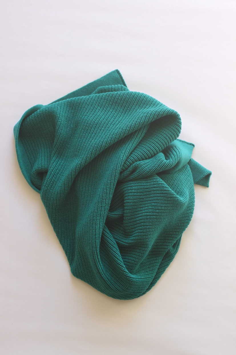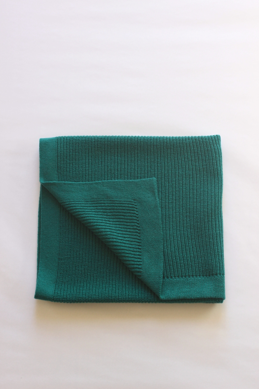 La couverture bébé made in France vert Emeraude de la Collab Chandam. x L’Habidouille est une douceur 100% laine mérinos d’Arles. Elle est tricotée en France dans une côte perlée souple et douillette. Vous pourrez aisément enveloppez vos petits dedans.