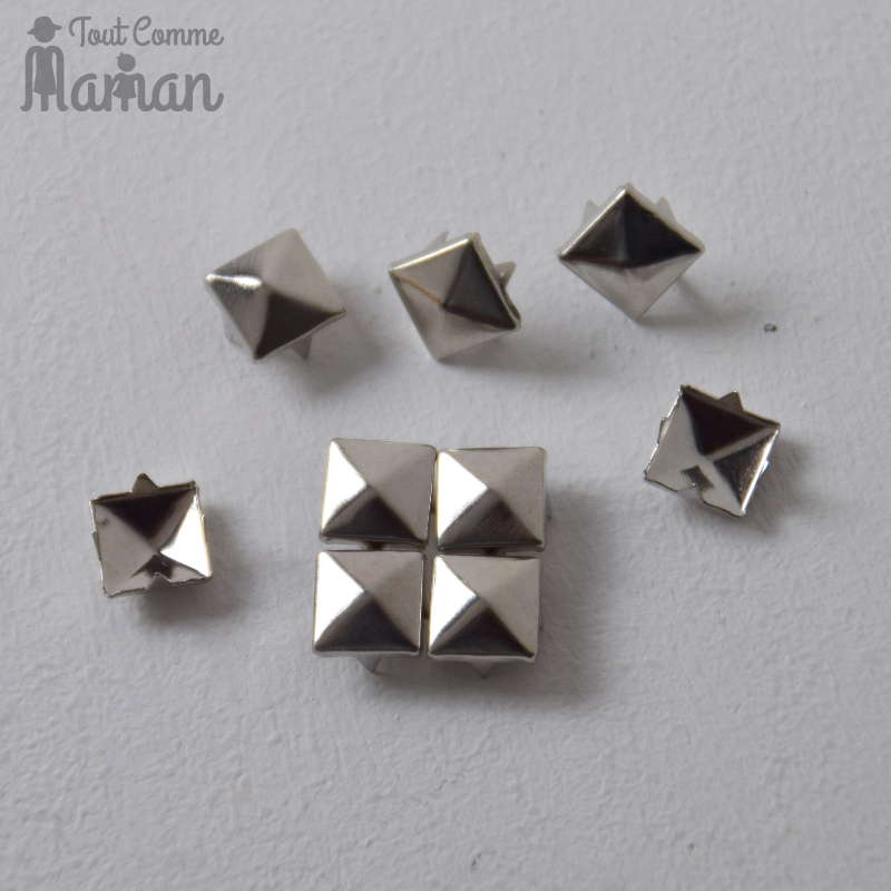 Lot de 10 clous à griffes pyramides en 9mm en différents coloris : argenté, argenté vieilli, bronze et doré.