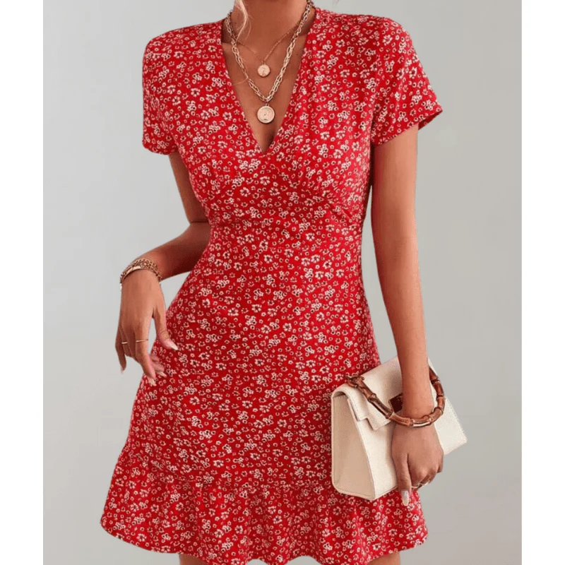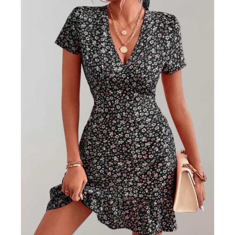 Mini Robe Fleurie Volantée Col V : Fraîcheur & Élégance