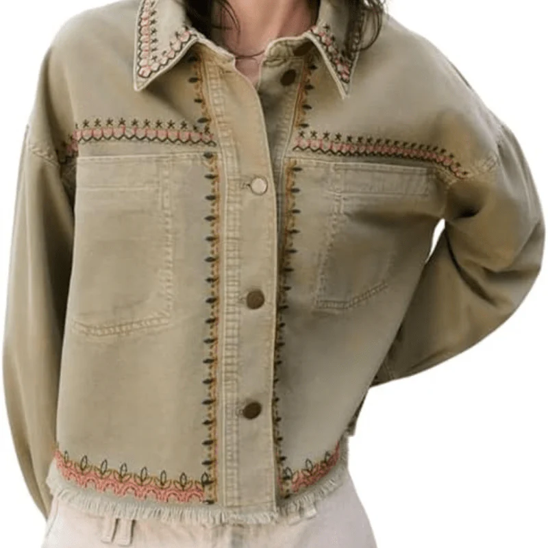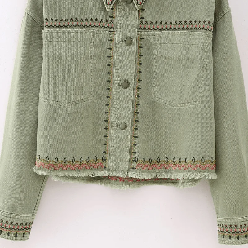 Olga – Veste en Jean Femme Brodée Style Bohème Chic