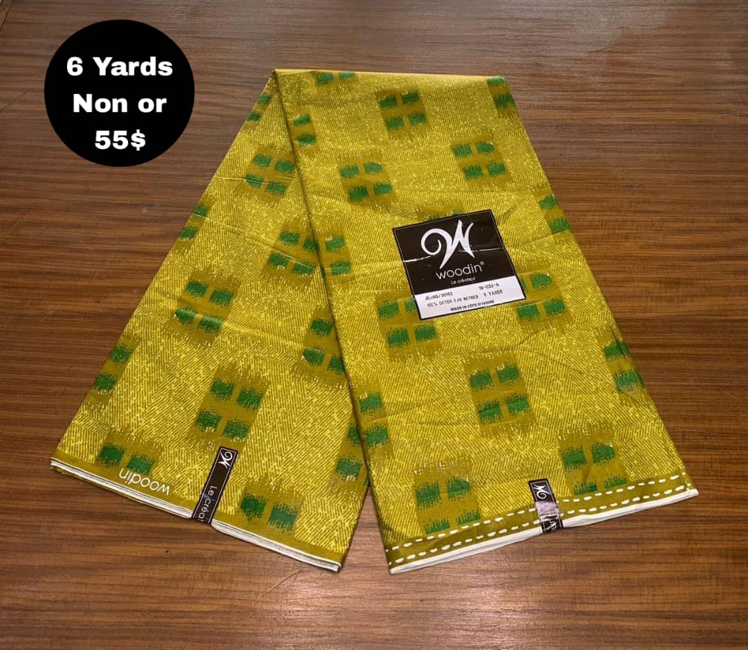 Tissu Woodin 6 Yards – Ambre Doré, Élégance et Polyvalence Le tissu Woodin 6 yards en Ambre Doré allie qualité premium et style raffiné. Idéal pour confectionner robes, chemises, boubous, pagnes, ensembles sur mesure ou accessoires, il offre des couleurs riches et profondes qui restent éclatantes même après plusieurs lavages. Léger, agréable au toucher et facile à travailler, ce tissu permet de réaliser des créations élégantes, durables et pleines de caractère, apportant une touche sophistiquée et lumineuse à chacun de vos projets.