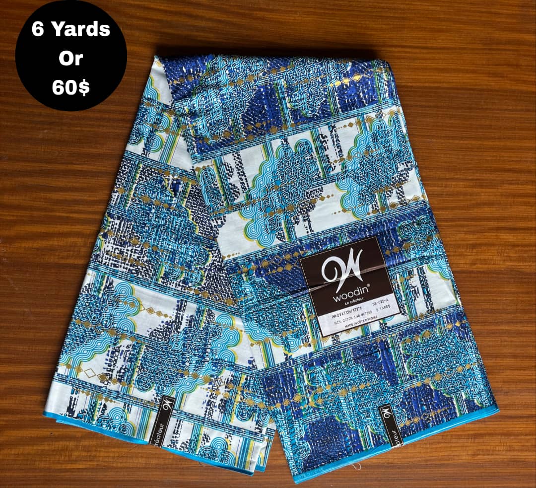 Tissu Woodin 6 Yards Or – Bleu Turquoise, Élégance et Polyvalence Le tissu Woodin 6 yards en Bleu Turquoise allie qualité premium et style raffiné. Idéal pour confectionner robes, chemises, boubous, pagnes, ensembles sur mesure ou accessoires, il offre des couleurs riches et profondes qui restent éclatantes même après plusieurs lavages. Léger, agréable au toucher et facile à travailler, ce tissu permet de réaliser des créations élégantes, durables et pleines de caractère, apportant une touche sophistiquée et lumineuse à chacun de vos projets.