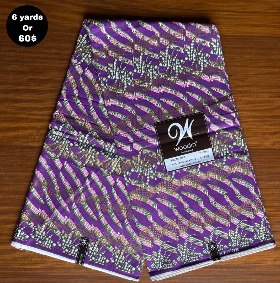 Tissu Woodin 6 Yards Or – Violet Prune, Élégance et Polyvalence Le tissu Woodin 6 yards en Violet Prune allie qualité premium et style raffiné. Idéal pour confectionner robes, chemises, boubous, pagnes, ensembles sur mesure ou accessoires, il offre des couleurs riches et profondes qui restent éclatantes même après plusieurs lavages. Léger, agréable au toucher et facile à travailler, ce tissu permet de réaliser des créations élégantes, durables et pleines de caractère, apportant une touche sophistiquée et lumineuse à chacun de vos projets.