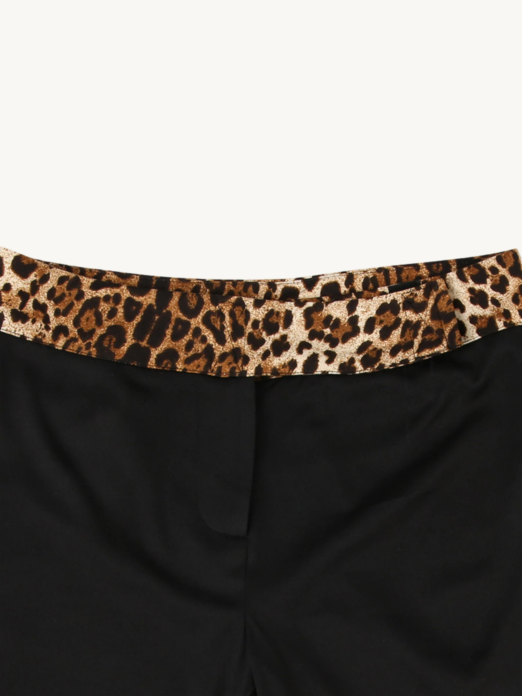 Ce pantalon taille haute associe une coupe évasée à une ceinture imprimée léopard audacieuse. Confectionné dans un tissu stretch, il épouse la silhouette tout en offrant une grande liberté de mouvement.
