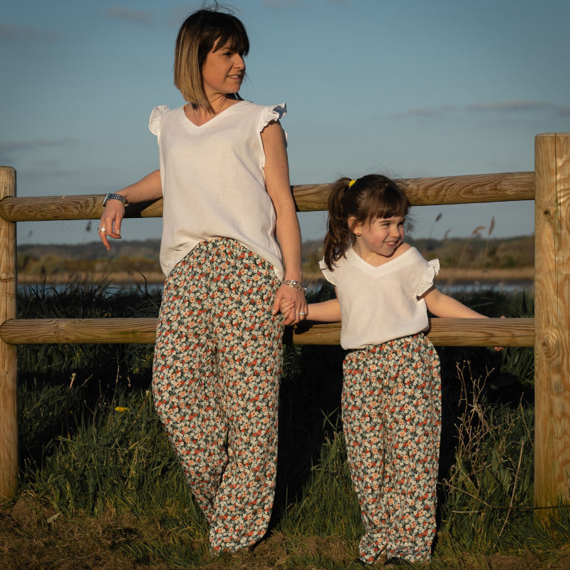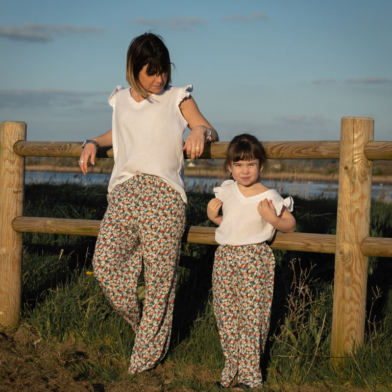 Un look mère et fille d’été 😉 Pantalon fluide fleuri avec taille élastique et ceinture tissu assorti. Taille Fille : Du 4 ans au 16ans/XS Taille Femme : Du 16ans/XS au XL Composition : 100% Rayonne
