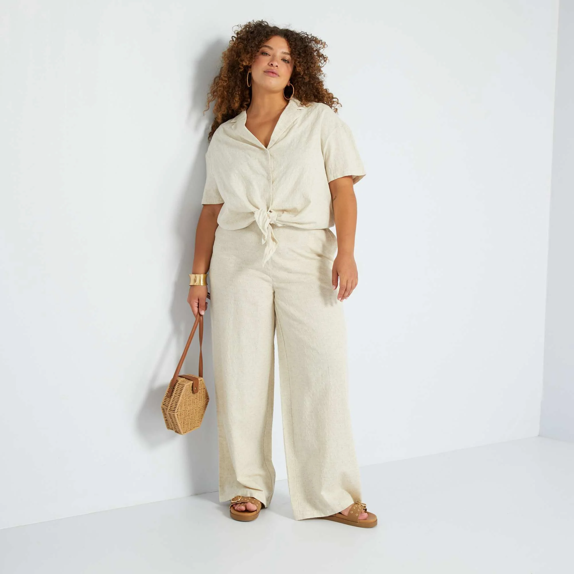 Pantalon large Beige