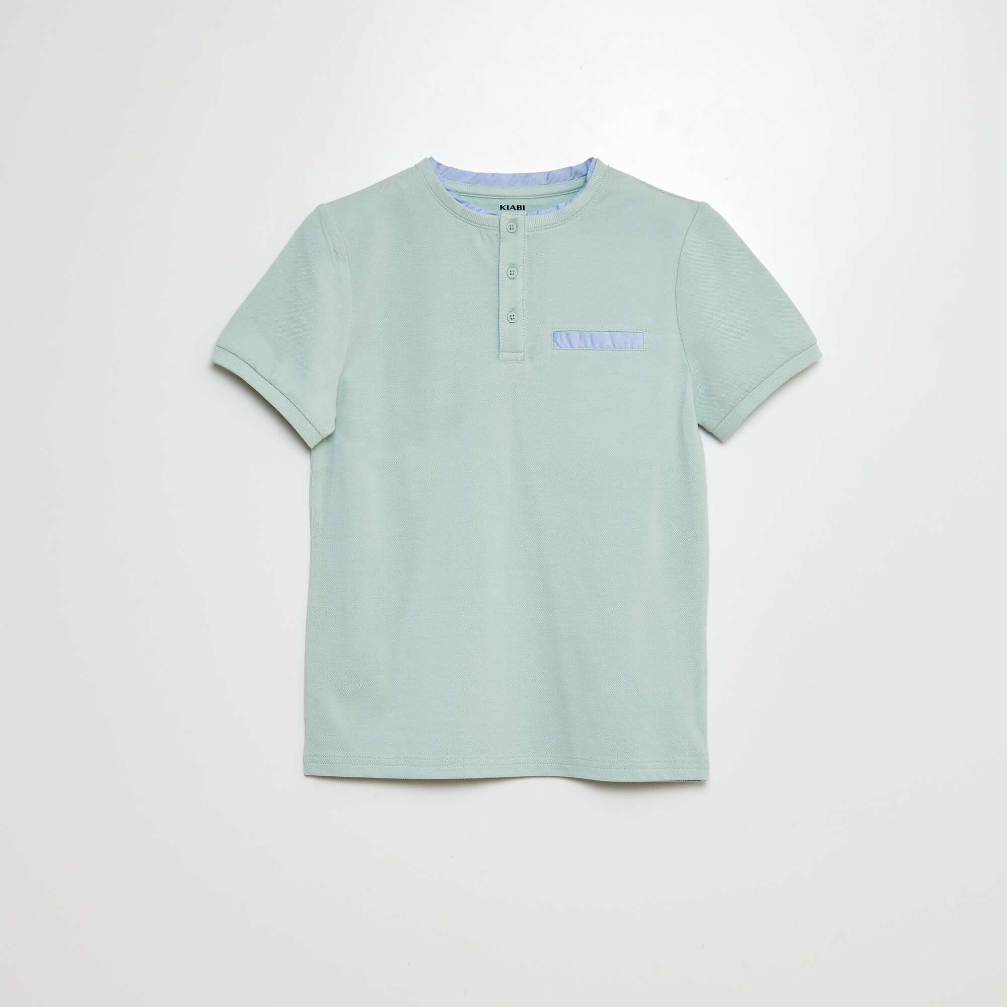 Soyez le premier à laisser votre avis sur “Polo col mao en piqué de coton BLEU”