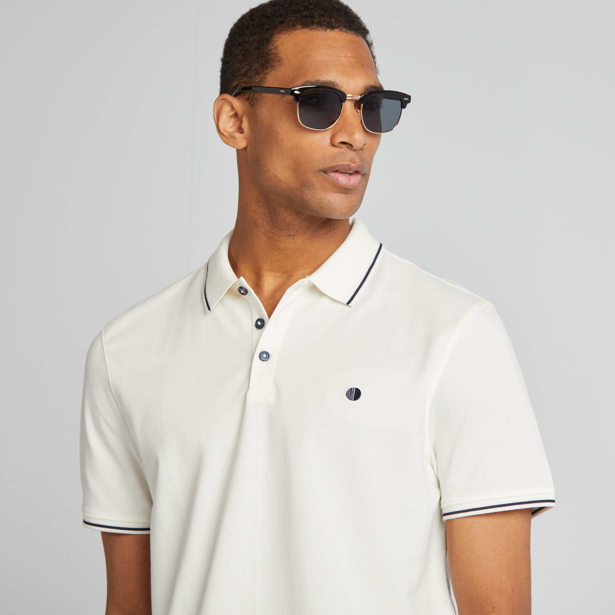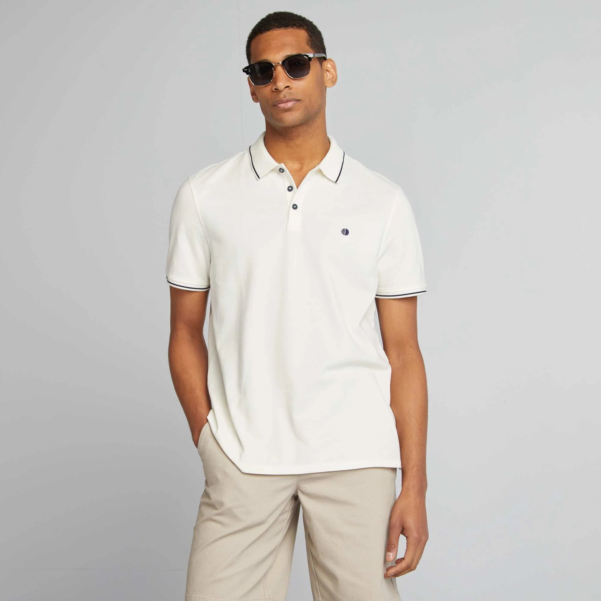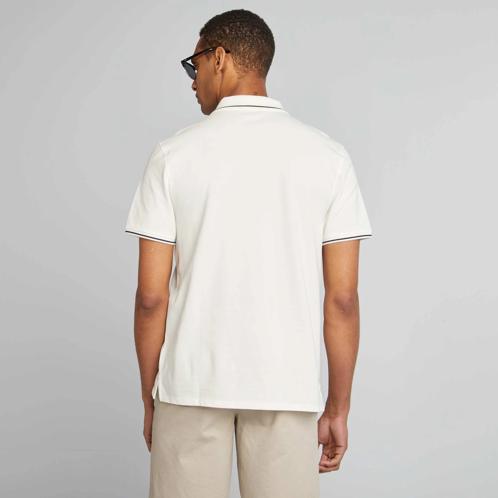 Polo uni en piqué de coton manches courtes BLANC