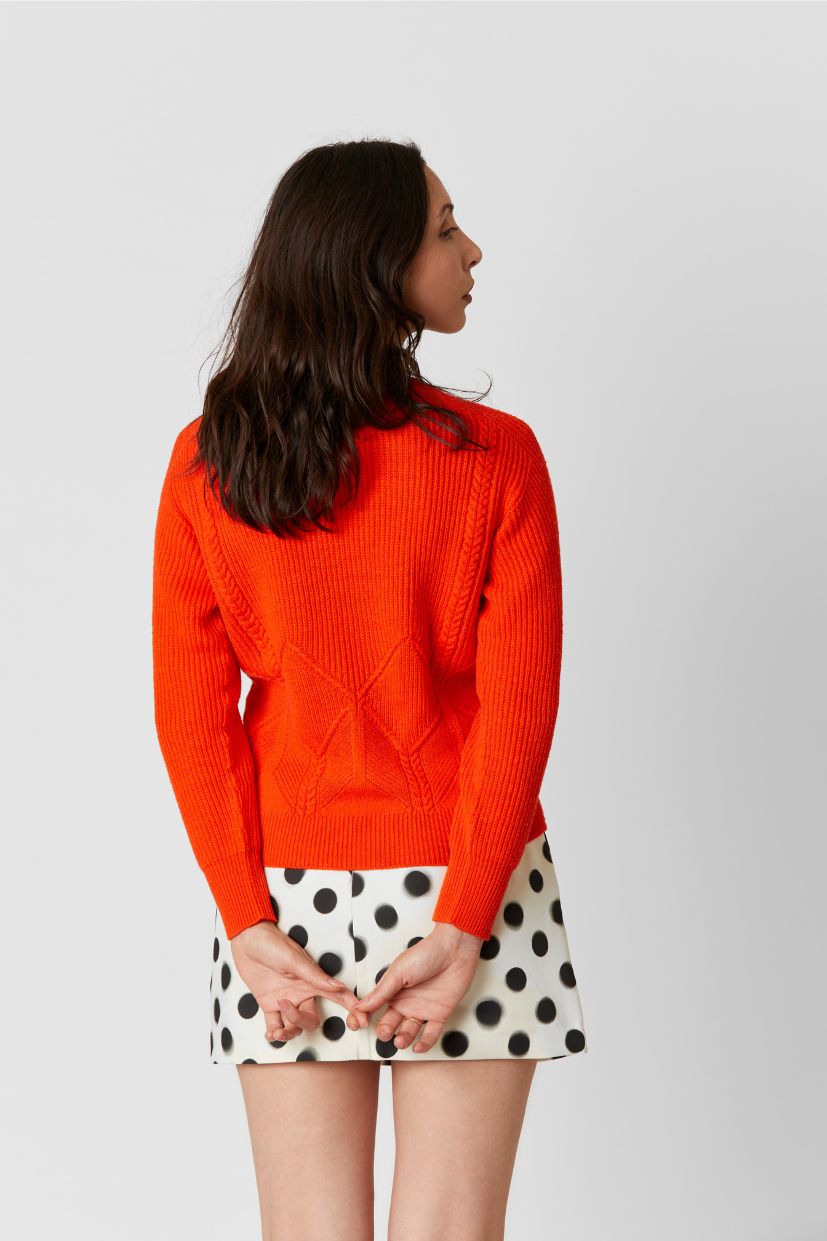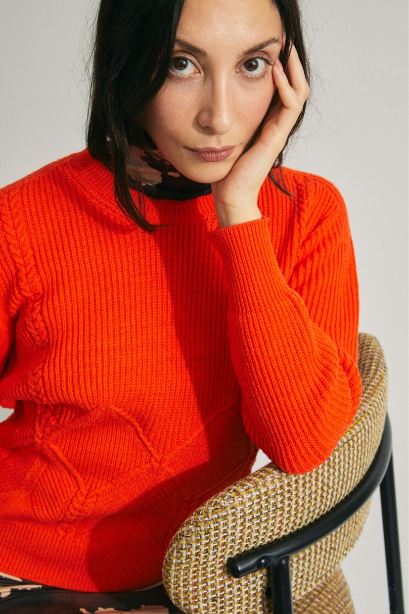 Le pull femme laine rouge Auran est tricoté en 100% pure laine mérinos française.