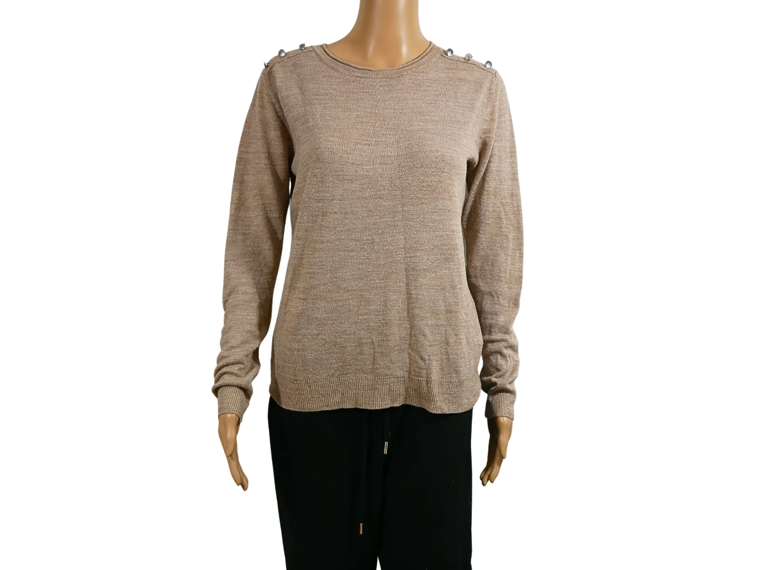 Ce pull en maille de la marque Atmosphere est une pièce incontournable pour une garde-robe féminine élégante et confortable. Conçu pour une taille EU38, il offre un ajustement parfait avec une longueur de 61 cm et une largeur de 38 cm, mettant en valeur la silhouette tout en restant agréable à porter. Sa maille fine en beige apporte une touche de douceur et de sobriété, idéale pour s’adapter à de nombreuses occasions, qu’il s’agisse d’une tenue décontractée ou plus chic. Les détails raffinés des boutons dorés situés aux épaules ajoutent une note sophistiquée et féminine qui rehausse le style du pull. Polyvalent et intemporel, ce pull est parfait pour compléter vos tenues d’automne et d’hiver avec élégance.