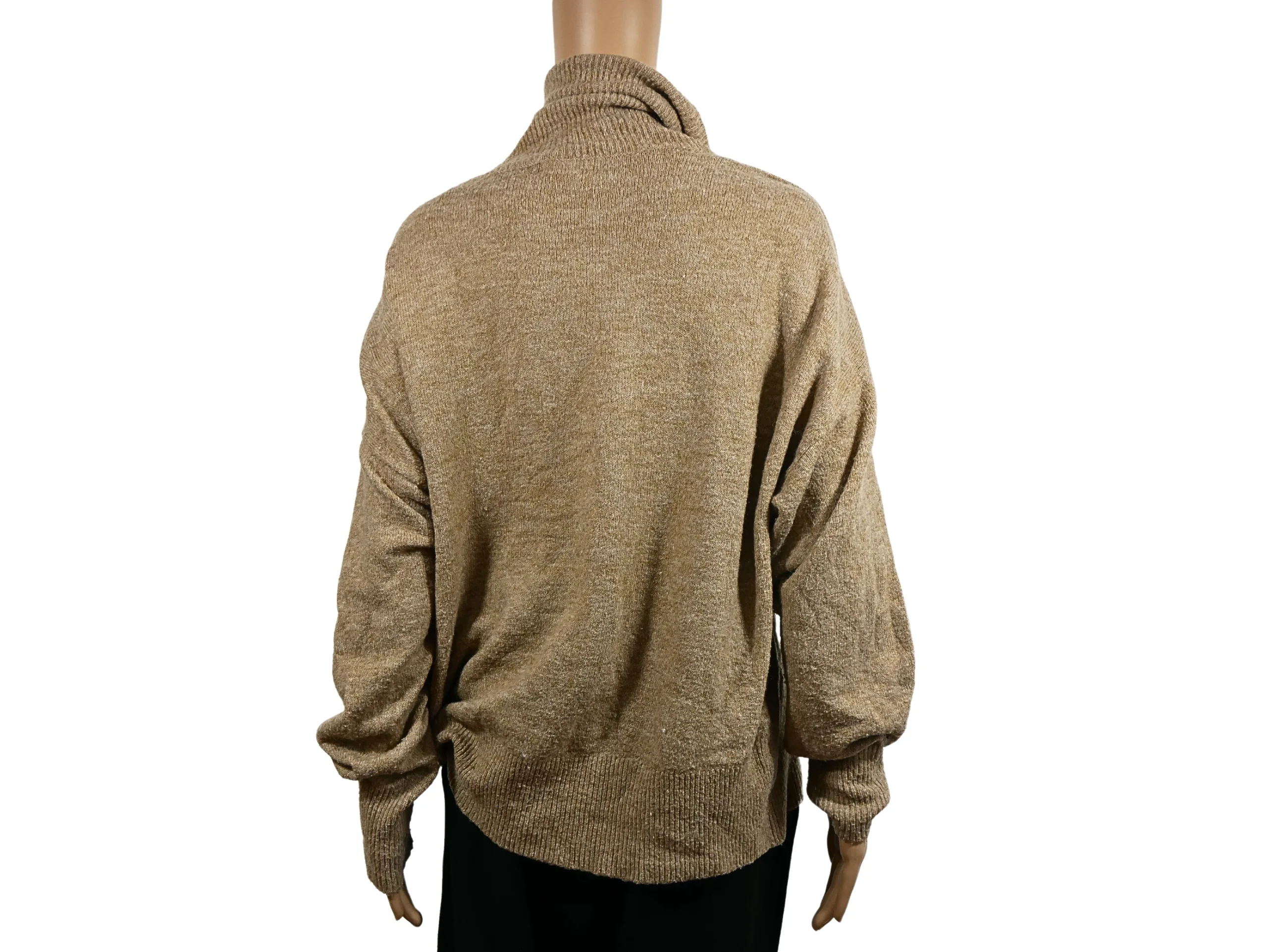Ce pull col roulé beige en maille épaisse est une pièce incontournable pour affronter les saisons fraîches avec style et confort. Fabriqué par la marque H&M, il allie qualité et modernité. Sa taille L offre une coupe ample et décontractée, parfaite pour un look cozy tout en restant élégant. Avec une longueur de 62 cm et une largeur de 60 cm, ce pull assure une couvrance idéale et une grande liberté de mouvement. La maille épaisse procure une sensation agréable de chaleur, idéale pour les journées d’hiver ou les soirées plus fraîches. Facile à assortir avec un jean ou une jupe, ce pull est un choix polyvalent pour un style chic et décontracté. Un indispensable à ajouter à votre garde-robe pour conjuguer confort et élégance au quotidien.