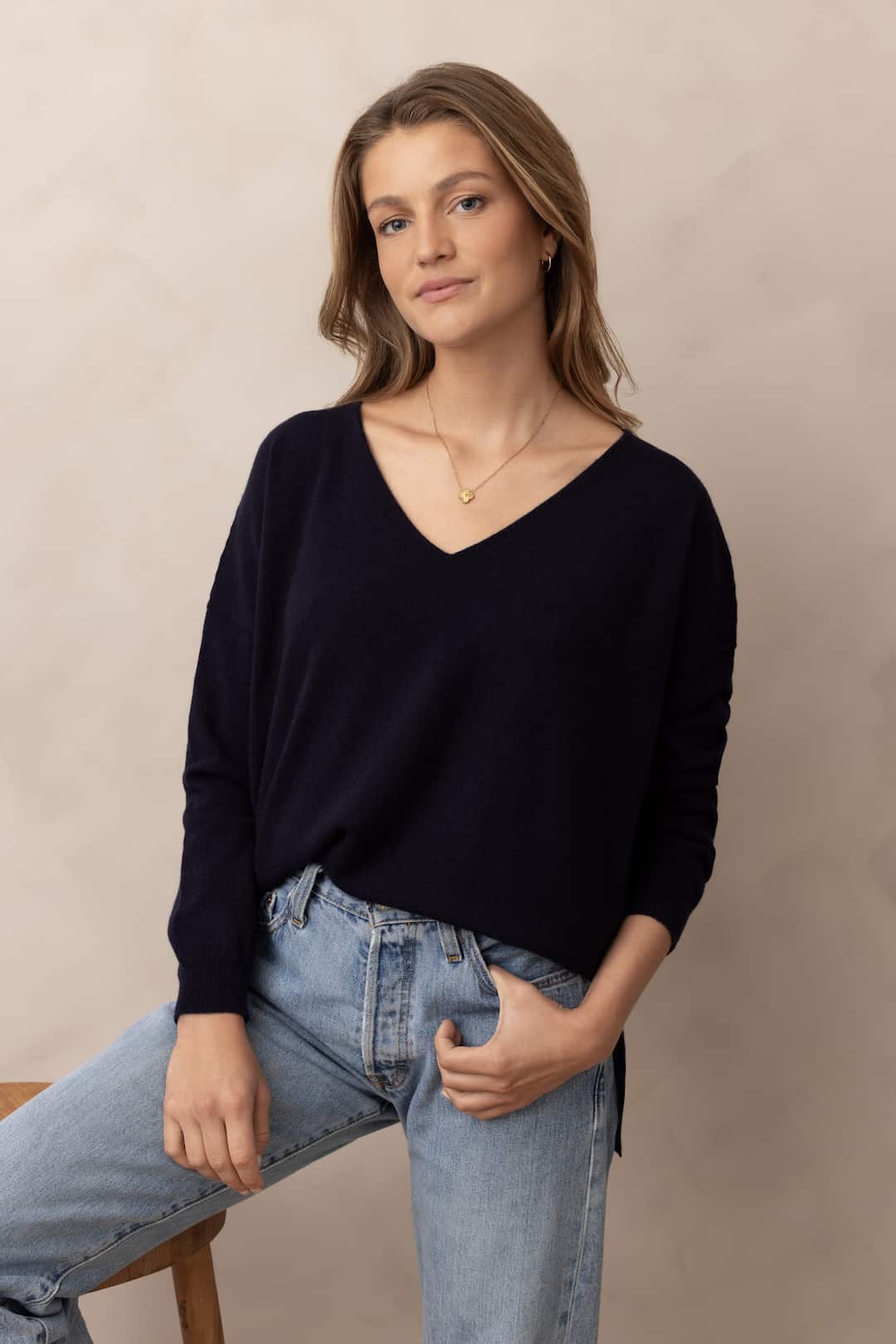 - Pull encolure V en maille laine et cachemire