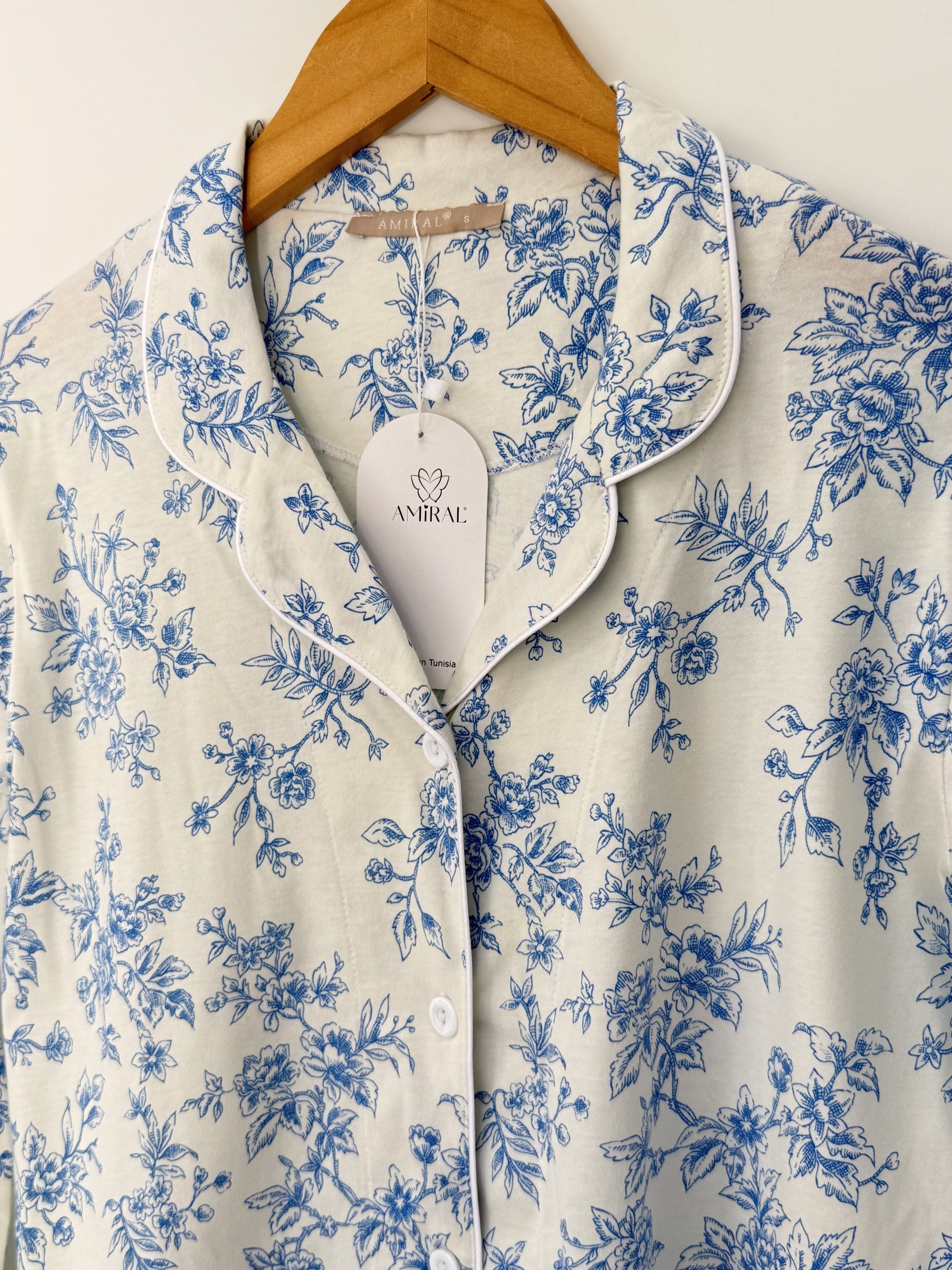 Pyjama chemise AMIRAL – toile de jouy – BLEU