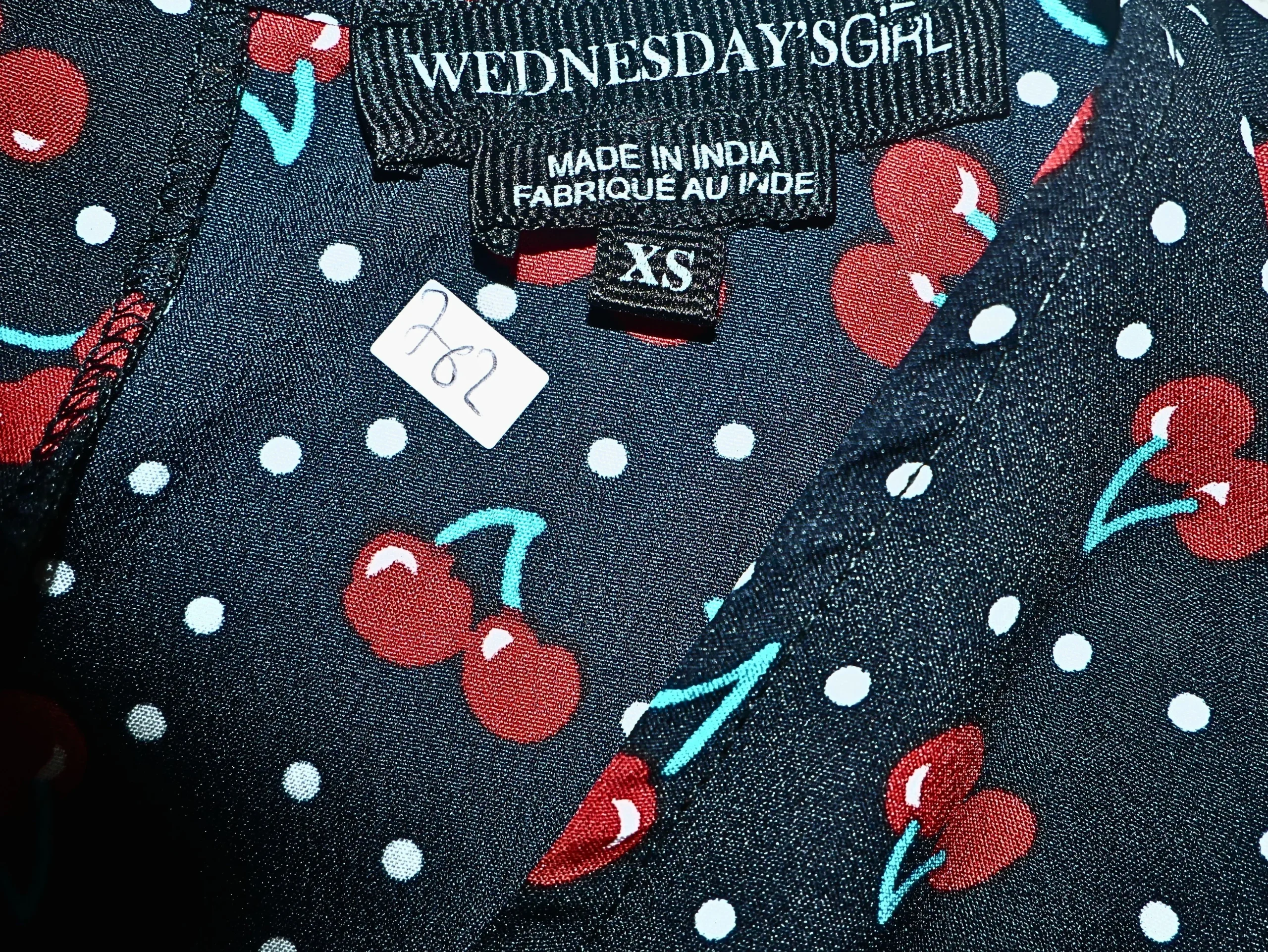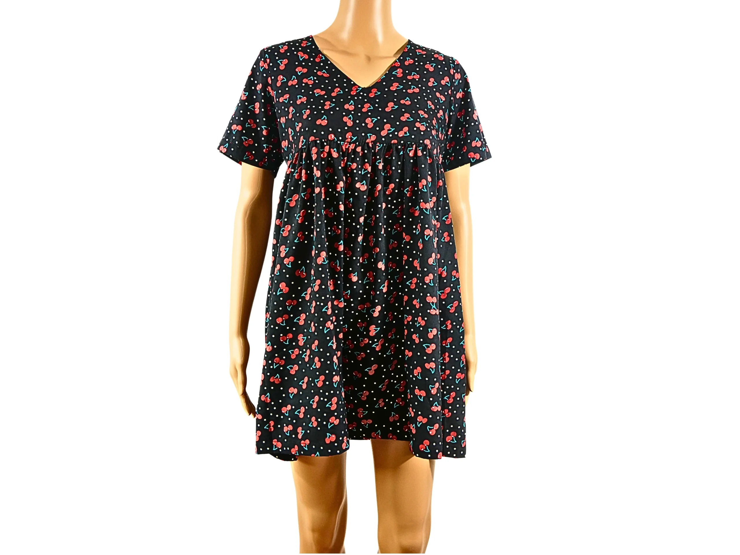 Découvrez la robe courte imprimé cerises Wednesday’s Girl, une pièce essentielle pour l’été ! Sa coupe baby doll de 80 cm met idéalement en valeur votre taille XS tout en ajoutant une touche de fraîcheur à votre garde-robe. L’imprimé cerises évoque des souvenirs d’enfance et apporte une note ludique à votre look. Que ce soit pour une journée décontractée ou une sortie entre amis, cette robe saura captiver tous les regards. Ne manquez pas l’occasion de vous démarquer avec ce vêtement léger et tendance qui allie confort et style.