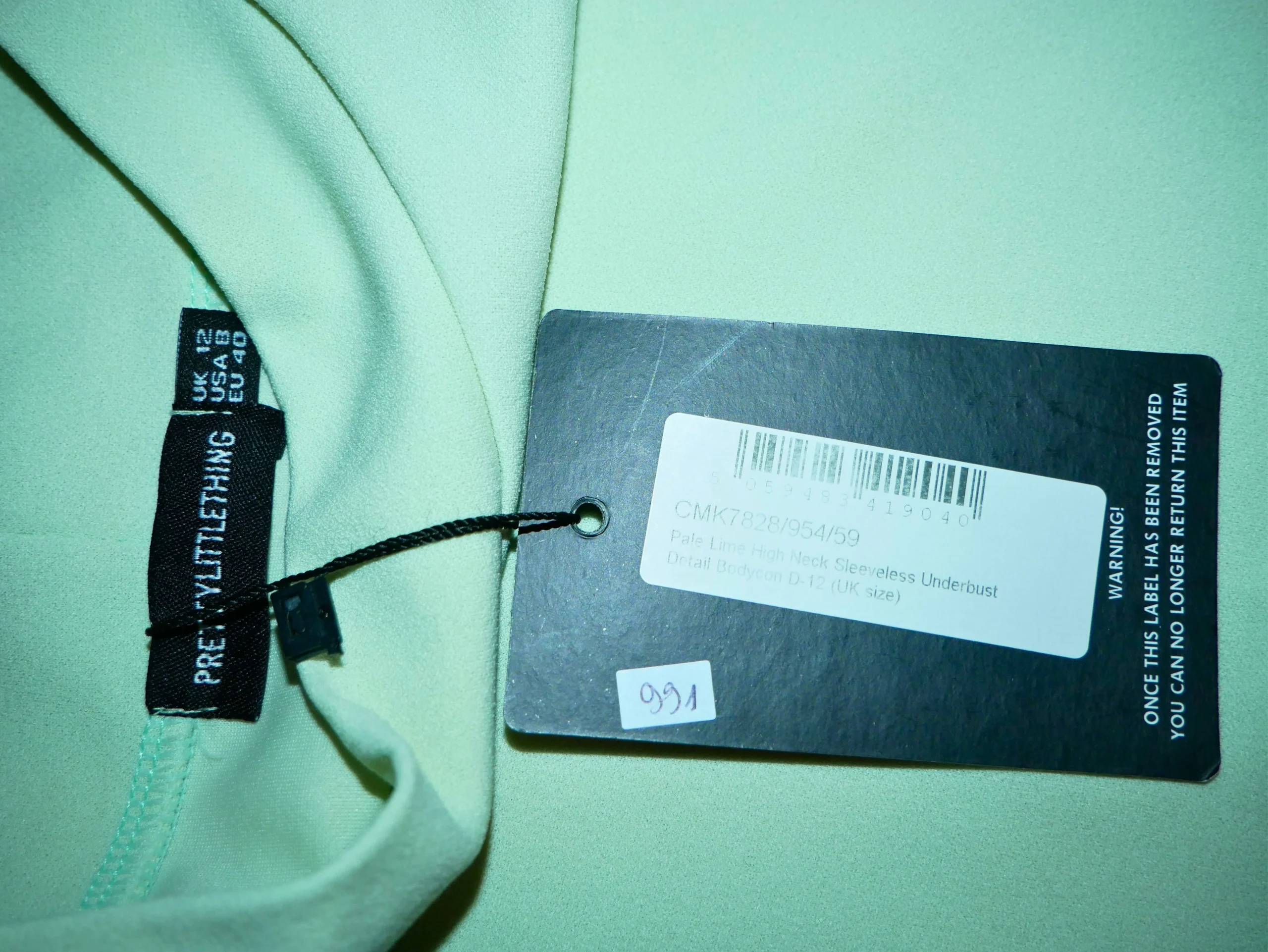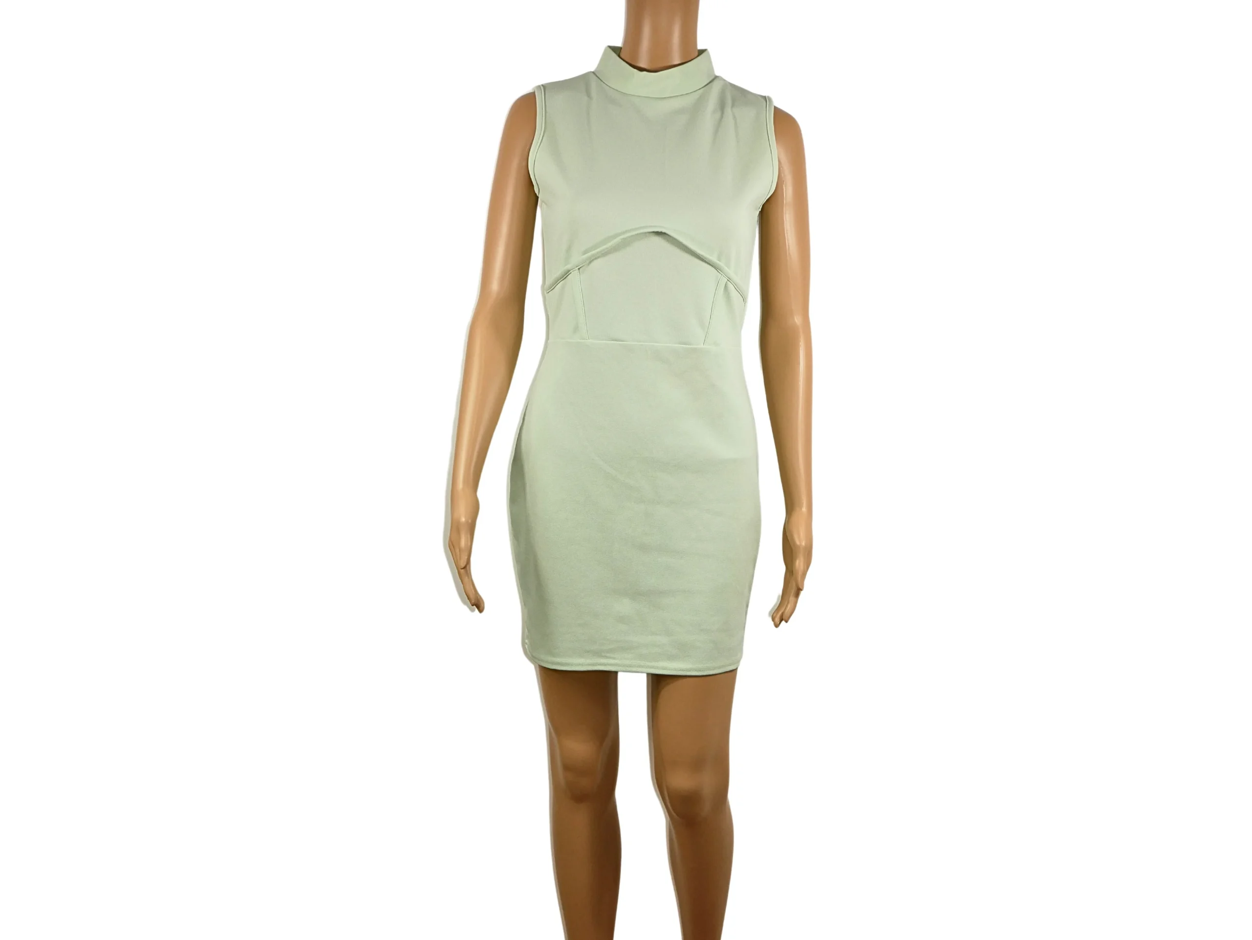 Cette robe courte verte sans manches de Prettylittlething, en taille 40, possède des dimensions de 84 cm en longueur et 40 cm en largeur. Elle est en excellent état et est disponible dans la catégorie outlet.
