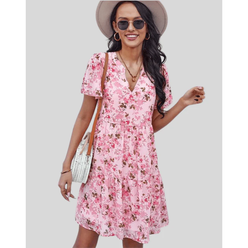 Mini Robe Fleurie Volantée Col V : Fraîcheur & Élégance