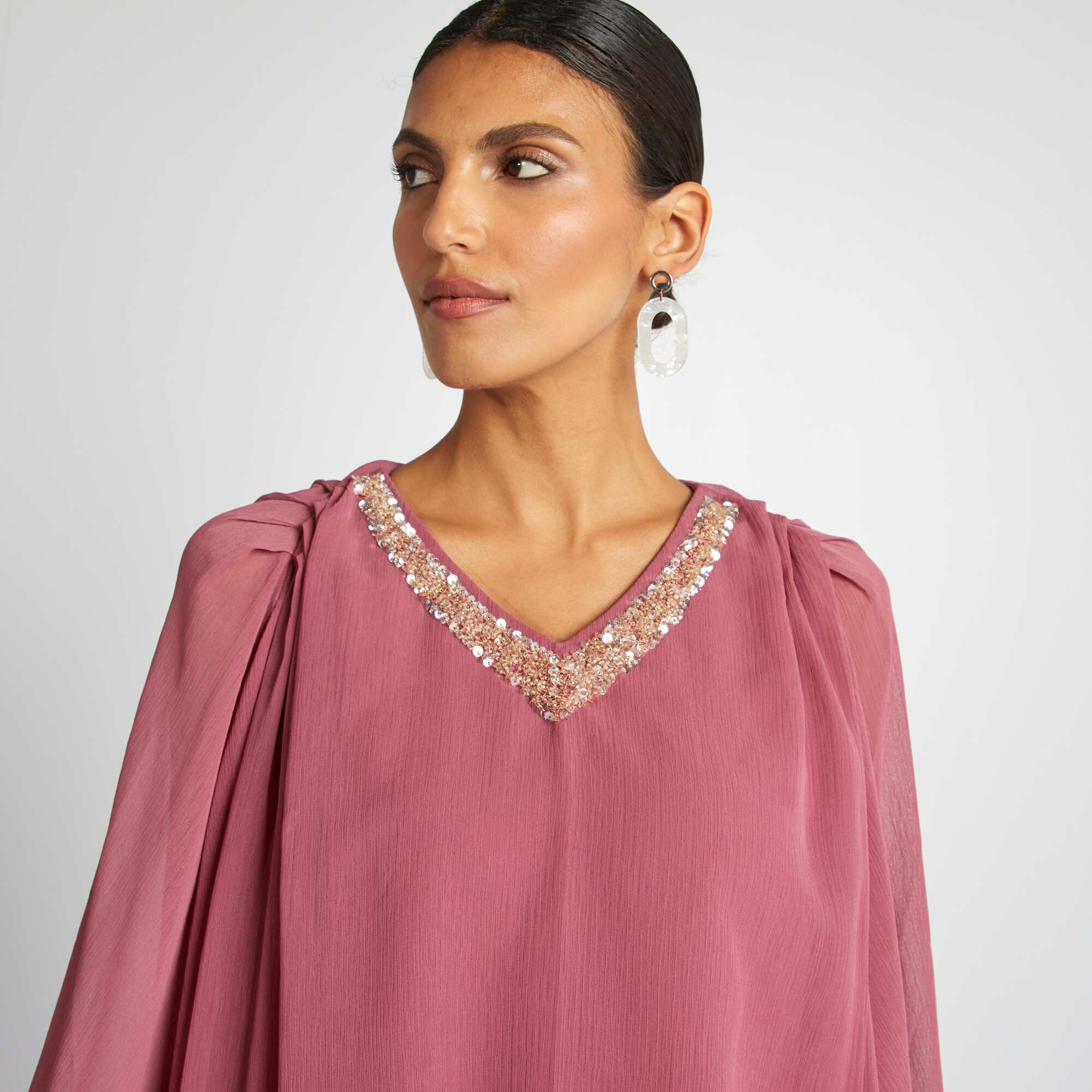 Robe longue avec sequins ROSE