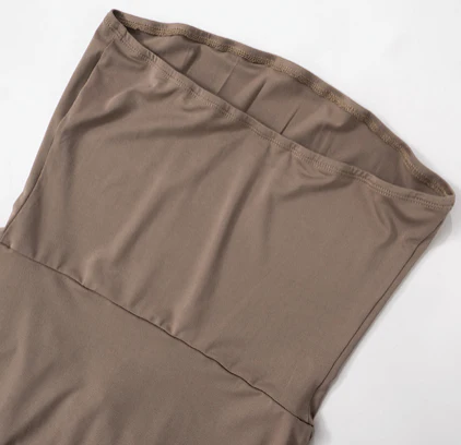Cette robe longue bustier séduit par sa coupe fluide et son drapé délicat qui sublime naturellement la silhouette. Sa matière douce et légèrement extensible assure un tombé parfait et un confort durable.