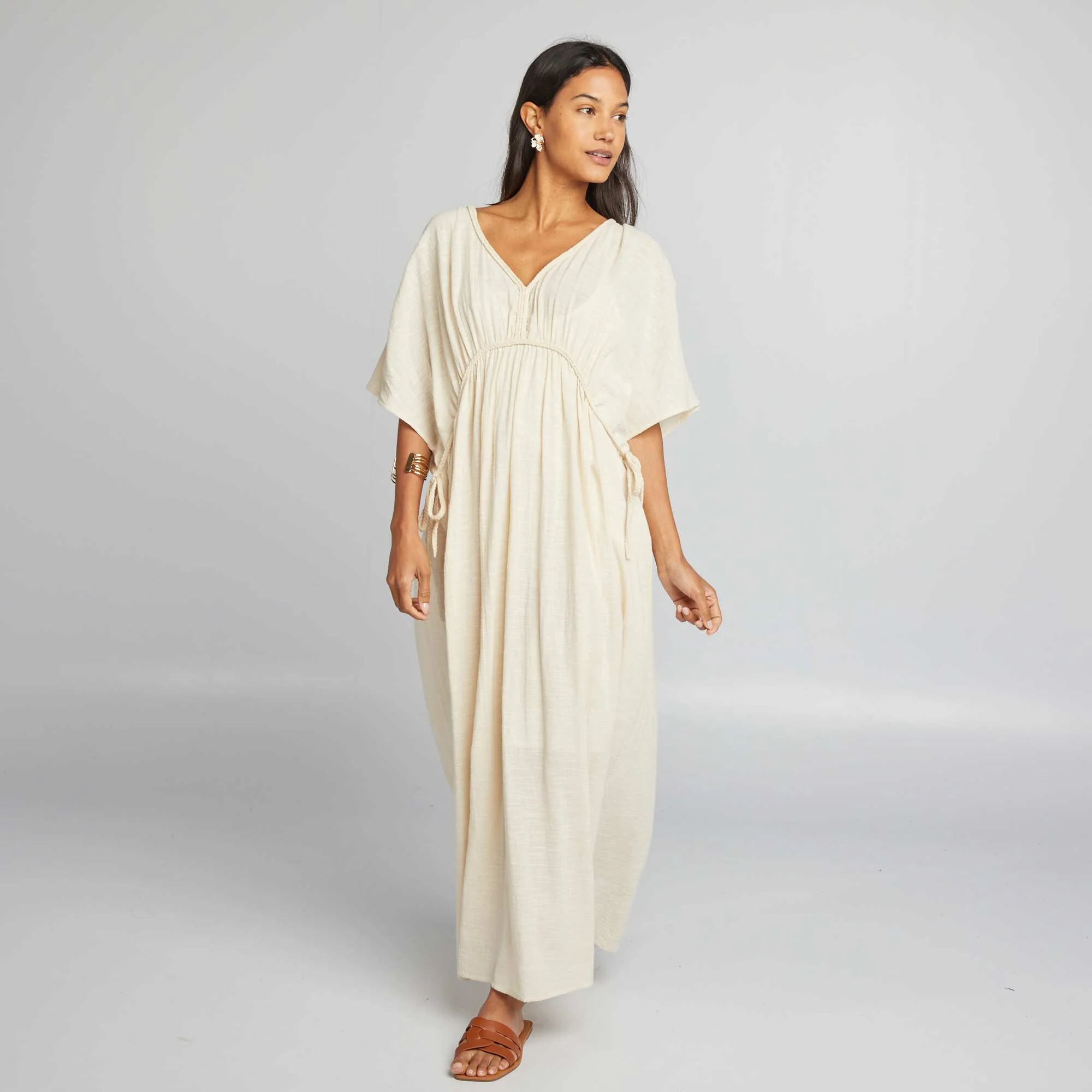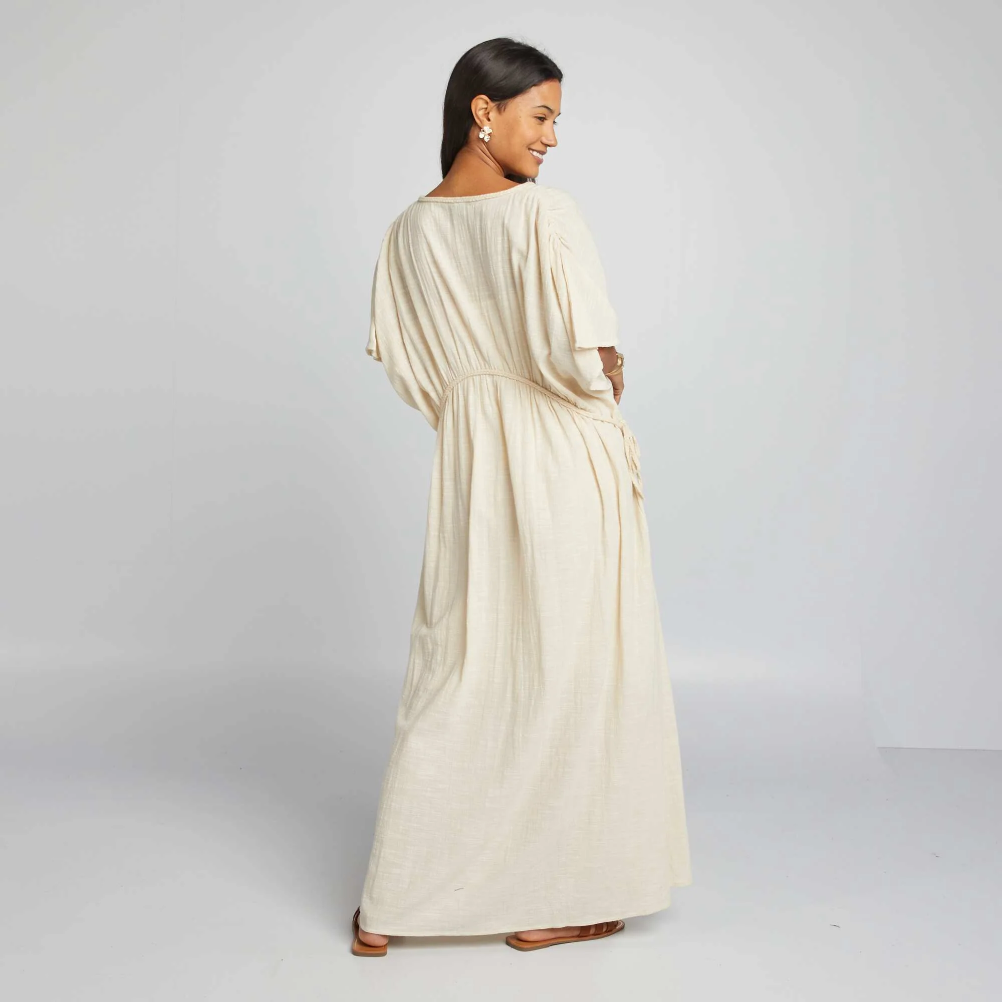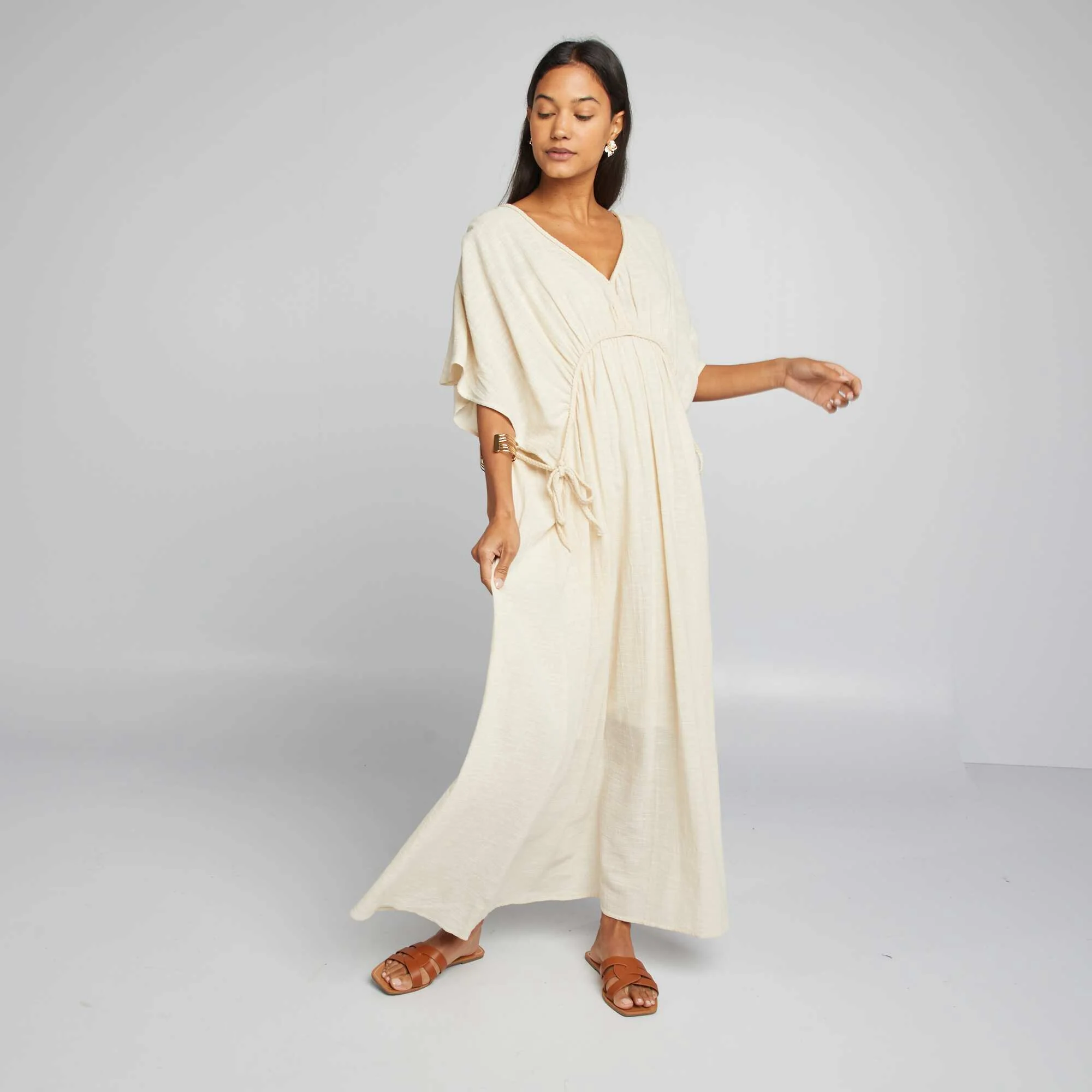 Robe longue en double gaze de coton Beige